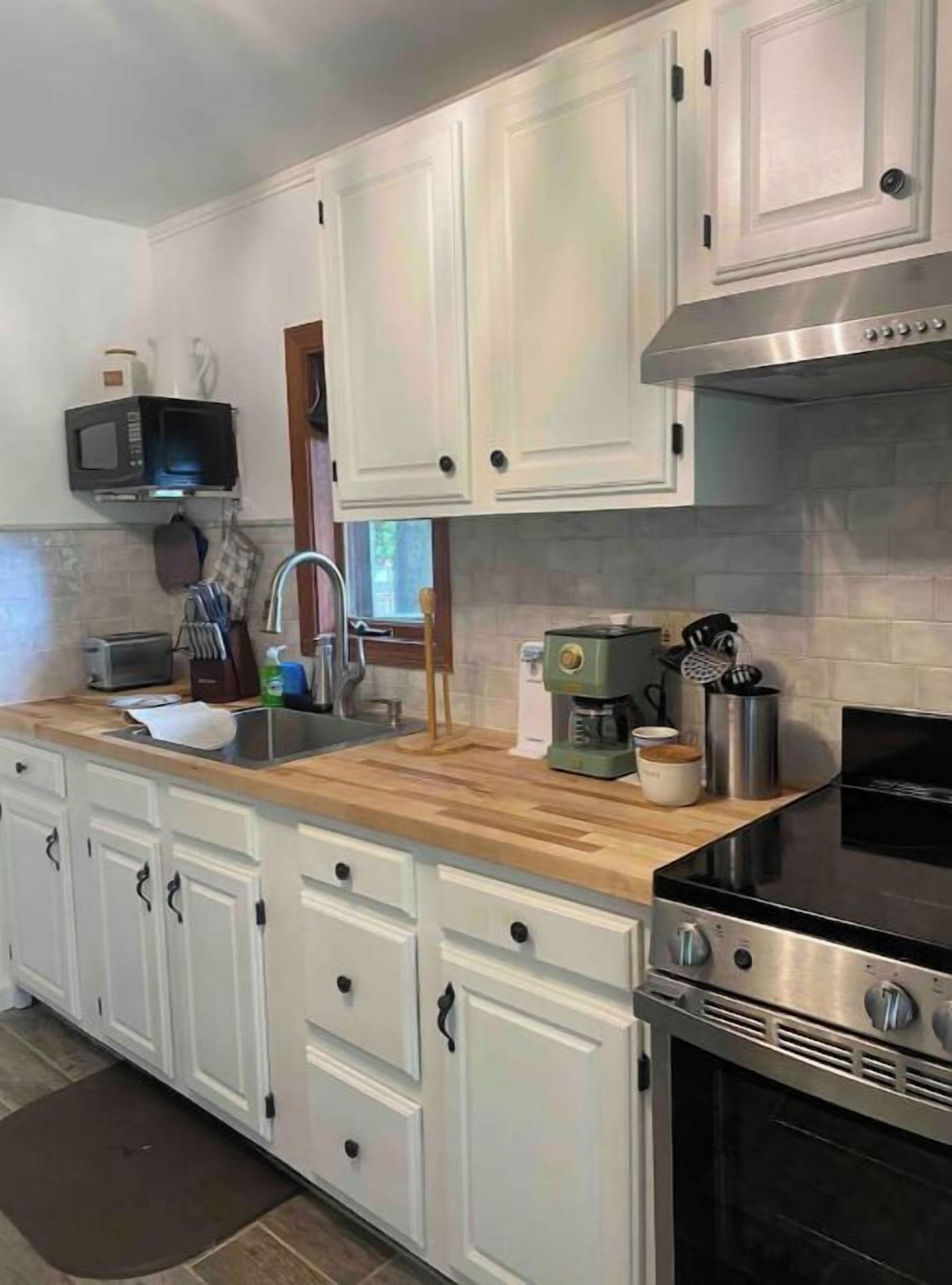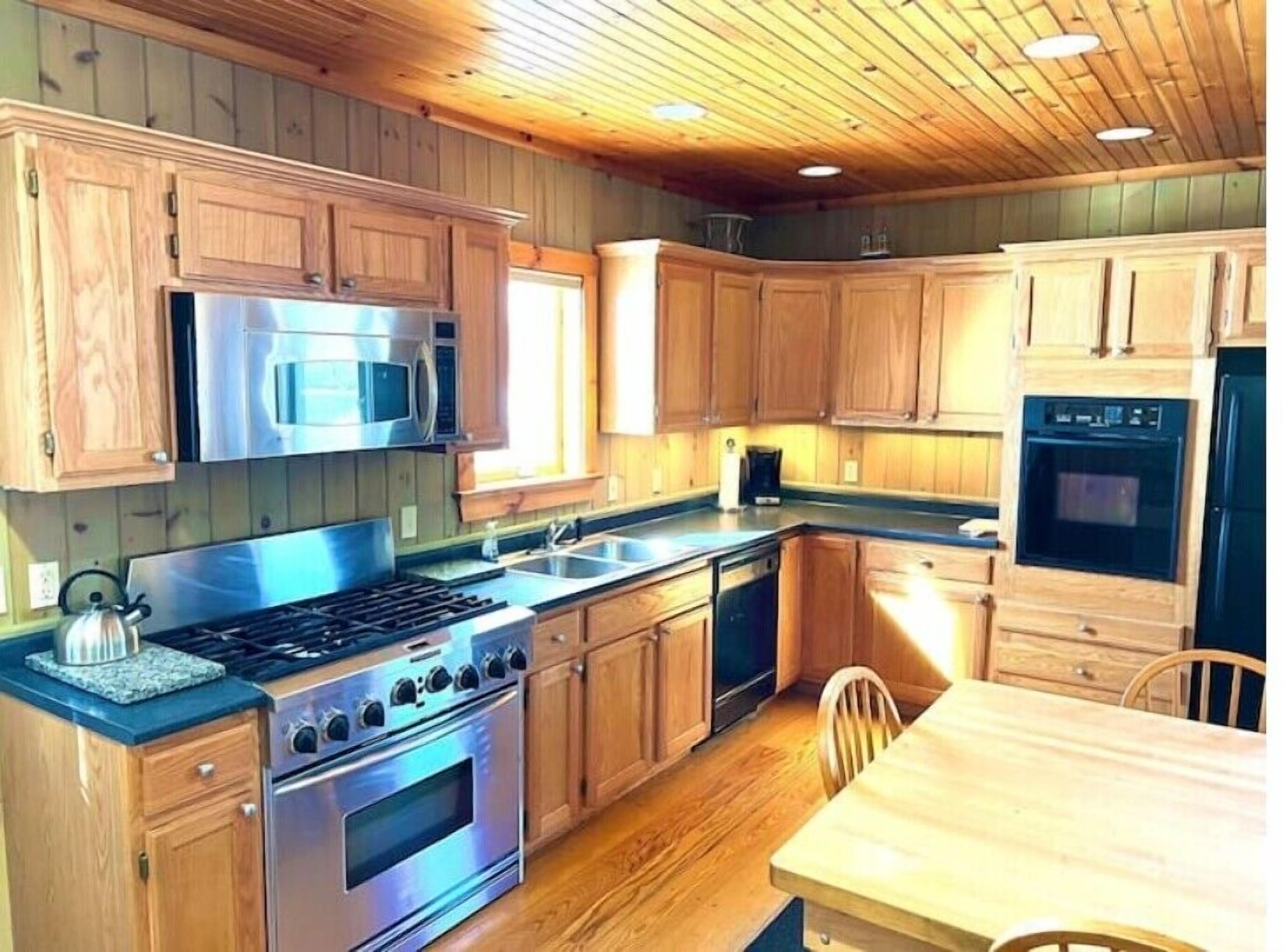 The kitchen is fully stocked with pots and pans, cooking utensils, and grilling tools. There is plenty of counter space along with a microwave, toaster, and coffee maker. A full-sized dishwasher with detergent is provided. We provide locally roasted coffee and a homemade baked good upon your arrival.