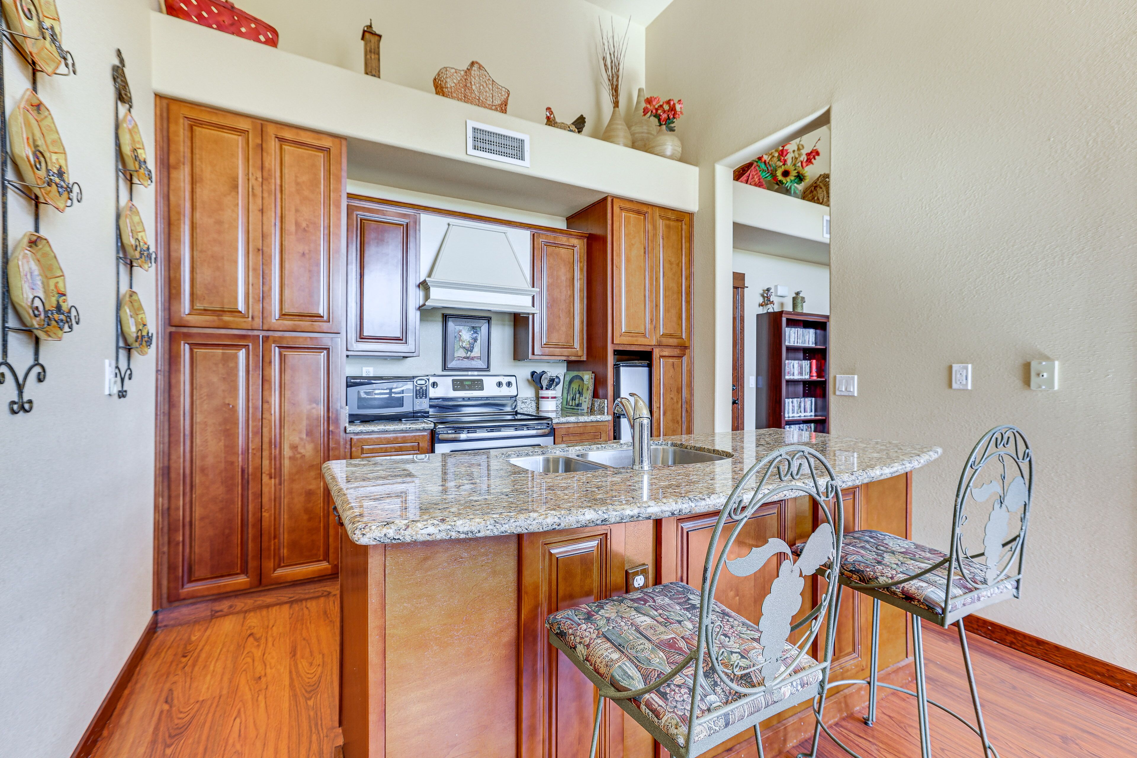 A haven of peace, the primary ensuite bedroom boasts excellent perks like a walk-in shower, dual ceiling fans, and ultra-comfortable bedding. The other three bedrooms are just as welcoming with amenities like high-quality linens and central air-conditioning. A private washer/dryer, jetted tub, high chair, and internet access round out the stellar list of interior amenities.