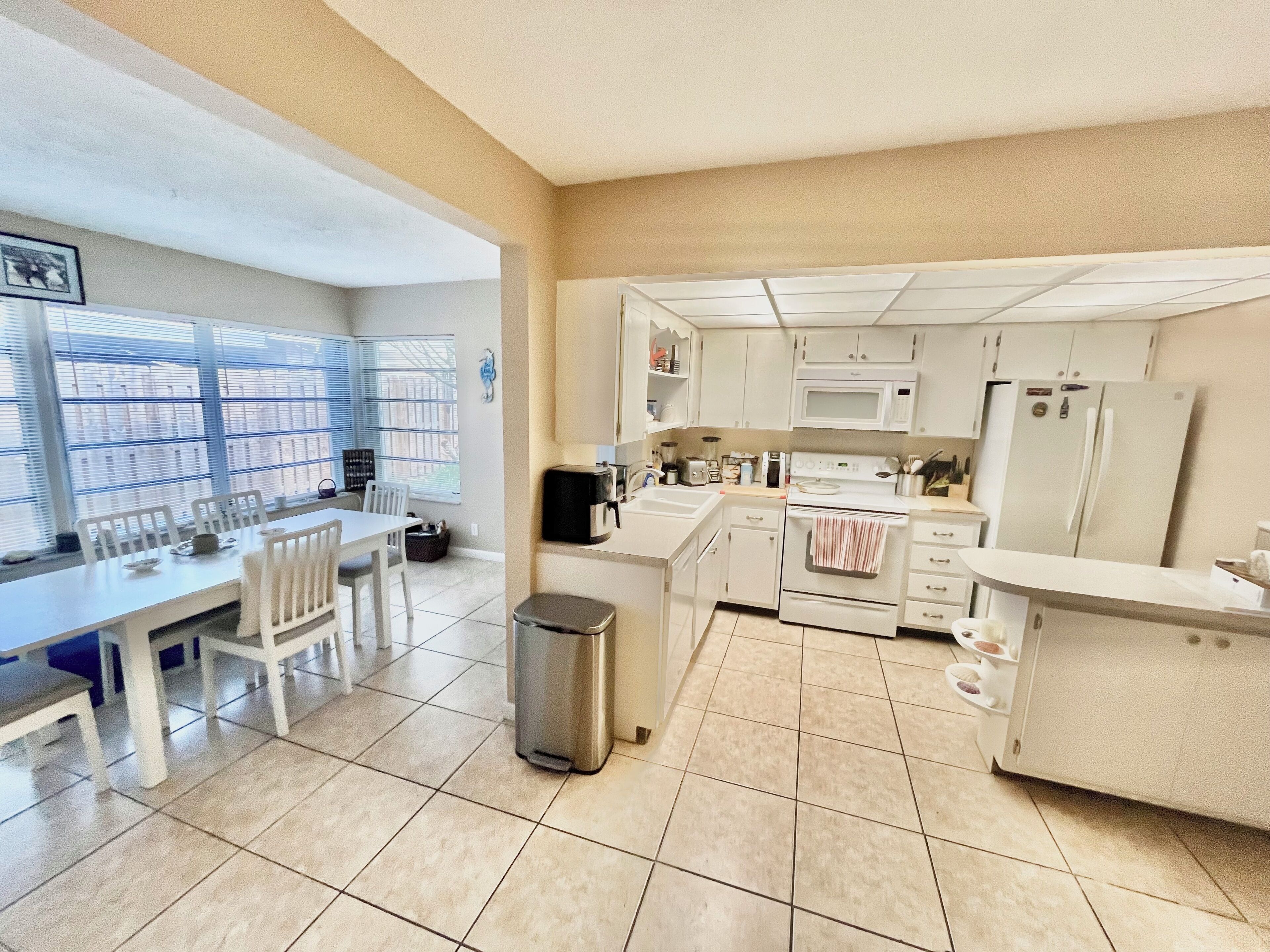 Off the living room is a galley styled kitchen with mini-fridge, toaster, microwave oven, Keurig & regular coffee maker, sink, a cozy glass-topped breakfast table with two stools and a full washer/dryer. We provide FREE beverages including coffee and tea pods, soft drinks and bottled water. You also have full use of the outside grille by the pool for cooking.