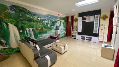 Homestay Aqiela Syariah offers accommodation in Wonosobo, 12 km from Dieng Plateau. This property offers access to a balcony and free private parking. The holiday home features a terrace, 4 bedrooms, a living room and a well-equipped kitchen. A flat-screen TV is provided. The nearest airport is Yogyakarta International Airport, 85 km from the holiday home.