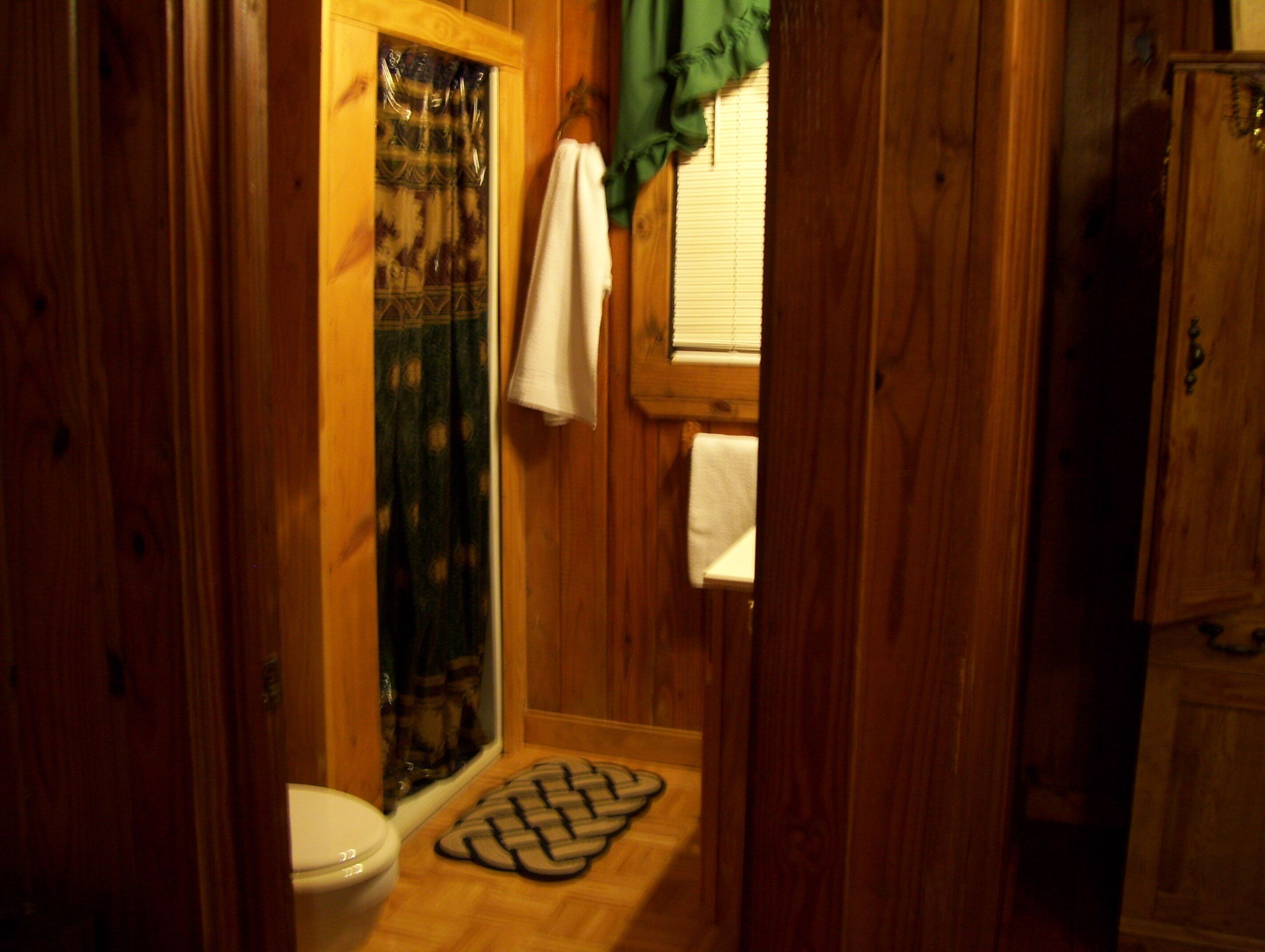 The cabin has full HVAC, business class internet, and most modern amenities but yet offers all of the hand carved wooden charm that we all crave from a weekend cabin experience. The master bathroom offers a simple river rock bottom standing shower, while the other bathroom offers a full garden tub for a nice warm bath. Though this charming cabin is a show stopper for a rural cabin, this property's true charm is outside on the rear patio: