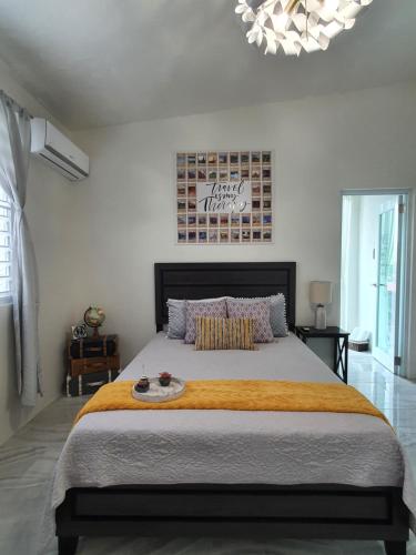 THE MOJONEO LIFESTYLE: THE DIAGRAM TO COMFORT. At Villa Mojoneo you will have a multi-dimensional experience, with the opportunity to enjoy the lavish indoor and outdoor spaces the villa has to offer. THE MOJONEO EXPERIENCE: Located at the southeast of Puerto Rico, Yabucoa [Yah-boo-ko-ah) is historically known for contributing to Puerto Rico’s sugar industry, however, this city has a rich local culture, spectacular views of the ocean and mountainous scenery as well as known beaches in our visitors’ top list of places to visit during their stay. At approximately 1.5hr drive away from the Luis Muñoz Marín international Airport, you will find the breathtaking inland treasure of Villa Mojoneo. Villa Mojoneo is located inside a gated community called, “El Cocal Beach and Country Club” which has access to one of Yabucoa’s most popular coastal spots, “El Cocal Beach.” The meaning of popular in this instance does not translate to multitudes congregated in the beach as observed in the San Juan area, rather, a more secluded environment. At check-in, we will provide our guests with a key to access the beach from the gate, approximately 3-4 minutes walking distance from the villa, and on some occasions, you can even have most of the beach to yourself! El Cocal has a small rocky formation that creates a natural pool called, “La Pocita”, which is perfect for our younger visitors, adding another level of safety. There is another area of the beach, attractive to surfers, which has good waves to catch! Besides feeling safe, you will also experience the privacy of Villa Mojoneo’s spaces while you enjoy the freedom of nature. Our experienced and accommodating, super-host will take care of you from the moment you express your interest through the end of your stay. We hope you have a grandeur feeling, because we have made this space available for someone special, YOU! In addition to the multiple indoor and outdoor spaces that Villa Mojoneo has to offer, the gated community of El Cocal Country and Beach Club has a recreational area for kids and open areas to take your dog for a walk with the ocean breeze and that salty smell that reminds us we’re near the beach. The community also offers a trash disposal area, near the entry gate, where our guests should take the trash daily to avoid the Caribbean insects that take advantage of any opportunity to join our guests in their stay. To enjoy the area at its fullest, we recommend our guests to rent a vehicle as the Uber and Taxi service in the area is not robust enough to support the demand. In a 10-15min drive, you’ll find a variety of fast foods, bakeries and restaurants that will add the puertorrican taste to your stay [we have crafted a list of recommendations for reference, to send upon request]. Our guests will also have access to a pharmacy and supermarket in this short distance range. The Outdoor Fascination: • Electric Gate Access • Two Parking Spots • Pergolas entrance and landscape gardening • A Priceless Rooftop View with Aspen Spa Jacuzzi for 4 adults, a 55” TV, 2 hammocks, 2 chaise lounges, an exterior patio set and curtains to provide privacy • Gazebo with covered kitchen area that includes small fridge, microwave, conventional oven, and Weber BBQ Grill • Exterior dining room for 6 guests • Uncovered patio seating area • Two terrace areas. The Inside Appeal: Lavish interiors inspired by trending decor styles and quality products make this home distinct. • Two bedrooms with air conditioning: King and Full Beds • Area with sofa bed • Full bathroom with the suitability of hot/cold water • Air conditioning available in open spaces • A Top-Notch Kitchen including serveware, dinnerware and cookware • Living Room Entertainment – TV – 65” • Dining Area that seats four guests, fully dressed including plates, drinkware and utensils • A Well-Furnished Home Office • Washer & Dryer. The property is equipped with automatic electric generator and water tank.