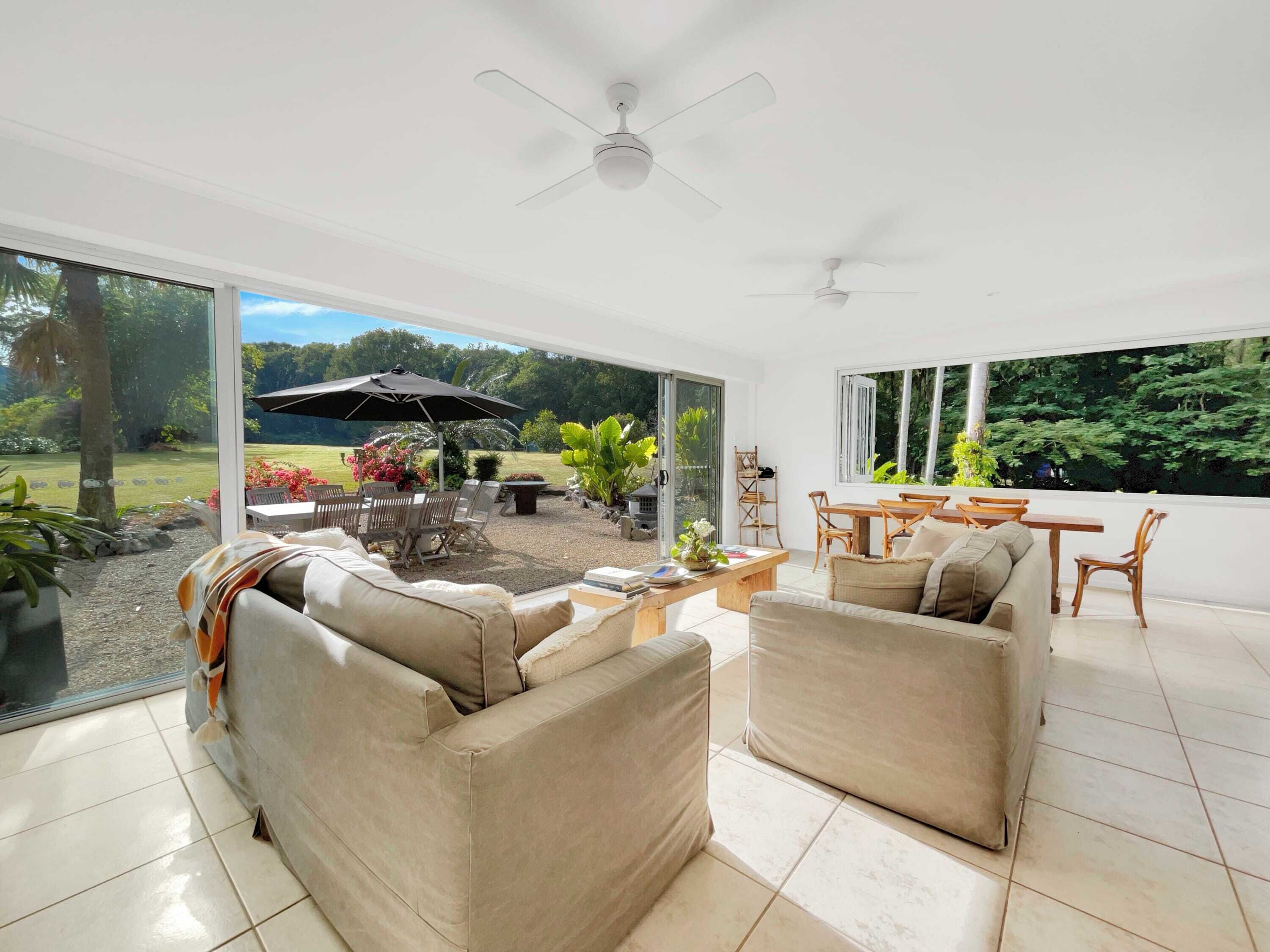 Nestled at the base of Mt Ninderry, a short stroll to the mountain walking track, and a short drive to the Wappa waterfalls, this acreage property offers country lifestyle with an abundance of wildlife, with all the benefits of living within a short drive to the best beaches, restaurants, Eumundi markets and train station. You will have an entire main house on the upper level of 2 storey Queenslander with private driveway /entrance. There is a small caretaker granny flat on the lower level. Ann Maree, the caretaker, is there if help is needed, and, in addition, offers in-house delicious cooking, extra cleaning and laundry. Otherwise, she doesn’t interact with the guests. Most of our guests found this arrangement extremely useful.
