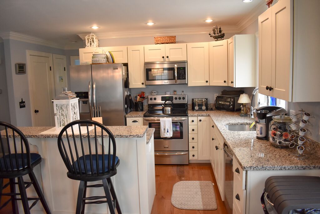This beautifully updated Cape Cod getaway offers modern comfort with a classic coastal feel. Featuring two bedrooms—one with a king bed and another with two twin beds—plus a queen pullout couch in the living room, this home comfortably sleeps six. The full bathroom includes a tub/shower combo, and the kitchen is equipped with brand-new stainless steel appliances, a drip coffe maker and a dining table that seats six.