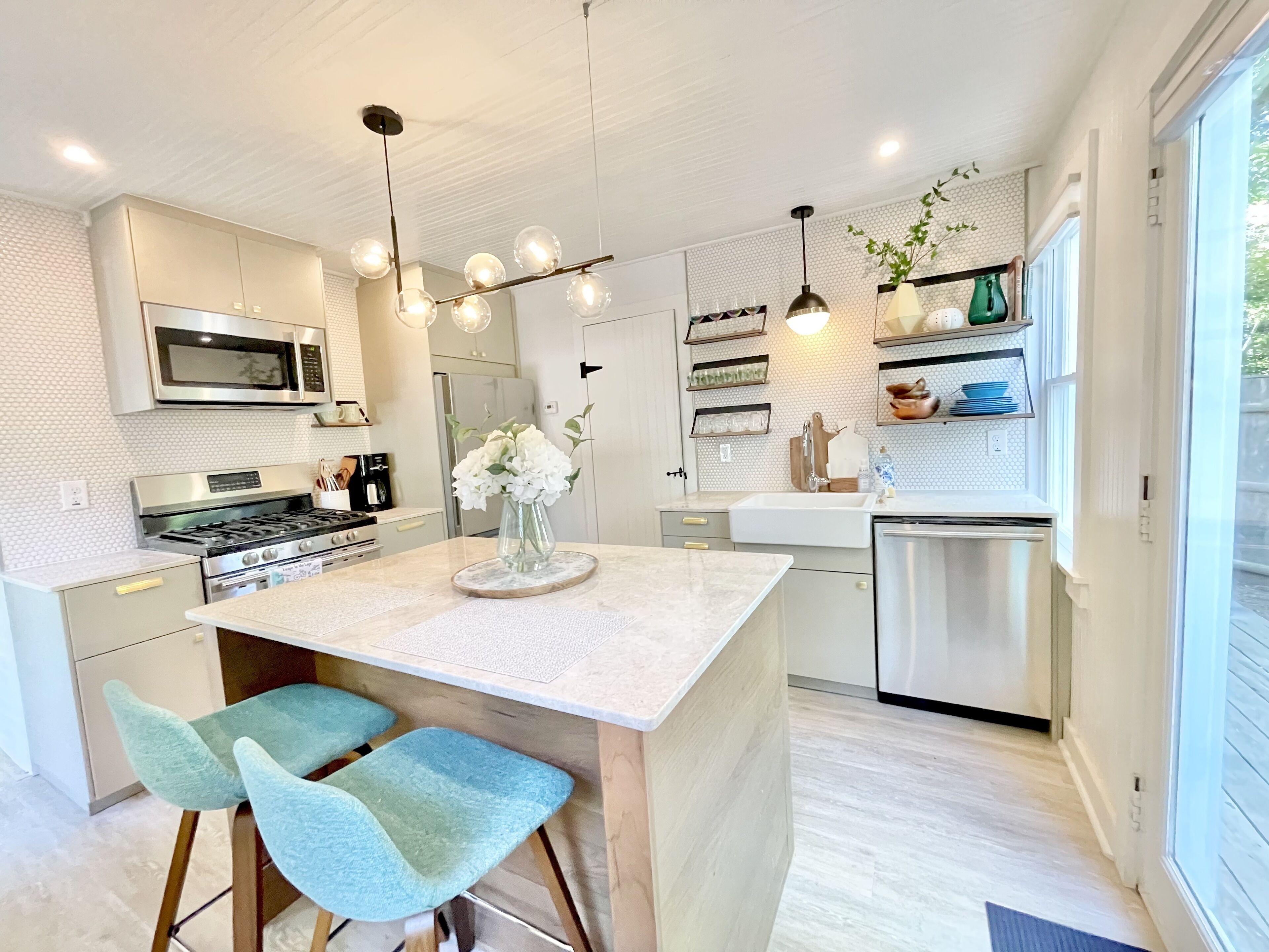 Step outside to enjoy the serene water view from the backyard, with Mill Pond just a short walk away for kayaking or paddleboarding. Outdoor amenities include a brand-new shower enclosure, new firepit and Adirondack chairs, and new deck and patio furniture, along with a propane grill for outdoor dining.