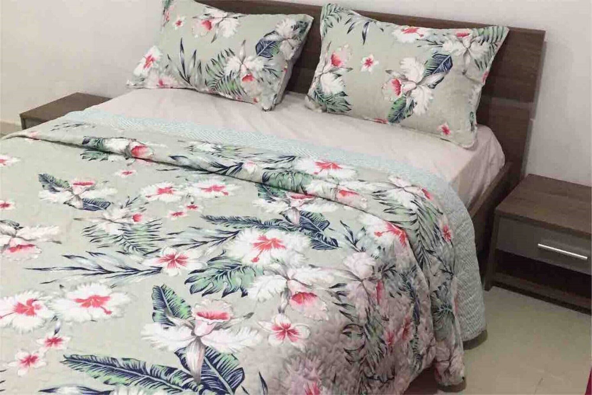 Well, design a Bedroom with a comfortable bed with a confit mattress. Equipped with WIFI on top of that a 50-inch Smart TV including a confit Kingsize bed. Within 100 years the main road, supermarket plus different shops.