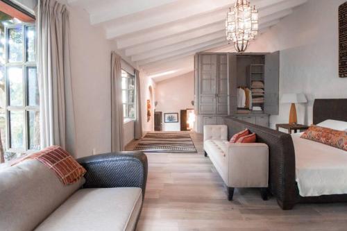 Casa Blumenhaus - Casa de Campo con Jacuzzi en Zapopan offers accommodations in Zapopan, 20 miles from Expiatorio Temple and 20 miles from Jalisco Stadium. This property offers access to a balcony, free private parking, and free Wifi. The apartment has an outdoor fireplace and a fitness room. Providing a terrace and pool views, the spacious apartment includes 4 bedrooms, 2 living rooms, TV, an equipped kitchen, and 3 bathrooms with a hot tub and a shower. Towels and bed linen are provided in the apartment. There's also a seating area and a fireplace. During warmer months, you can make use of the barbecue facilities and eat on the private patio. Guests can enjoy the infinity pool and garden at the apartment. Guadalajara Zoo is 21 miles from Casa Blumenhaus - Casa de Campo con Jacuzzi en Zapopan, while Guadalajara Cathedral is 21 miles away. Guadalajara Airport is 32 miles from the property.