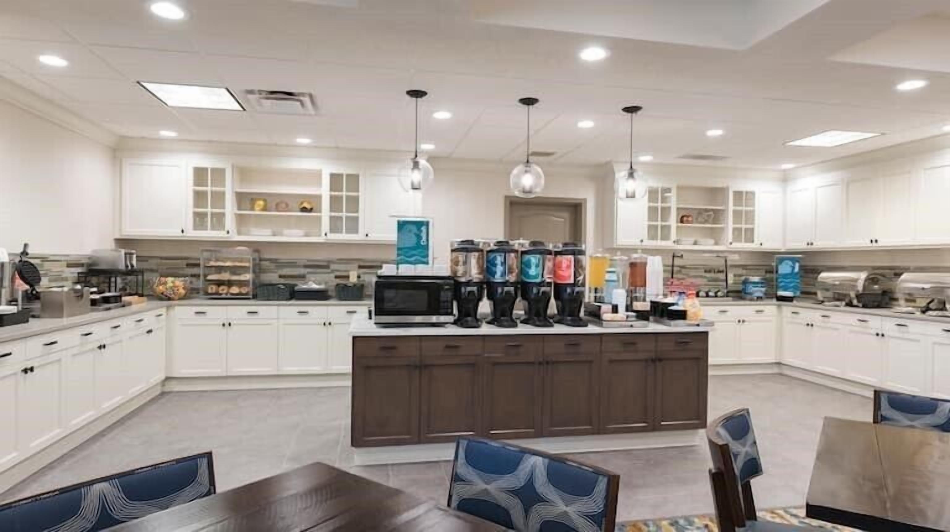- "Very nice, had a separate room with tv, couch and chair. Clean, generous amount of fluffy and clean towels. Warm comforter on bed. Bathroom very clean with nice Dove soap dispensers in shower. Breakfast was nice, eggs, biscuits, gravy, juices, cereals and waffles - clean and welcoming dining room. Would highly recommend this hotel." - "Very clean hotel, well organized breakfast area, kind staff. Bedding and towels clean and soft. "