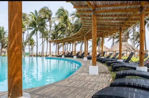 Casa, alberca, club de playa WI-FI en Acapulco is located in Barra Vieja, just 16 miles from Acapulco Navy Historic Museum and 17 miles from Acapulco Convention Center. The air-conditioned accommodation is 15 miles from Chapel of Peace, and guests can benefit from on-site private parking and complimentary Wifi. The accommodation features full-day security and a concierge service for guests. Featuring a patio with pool views, this villa also includes a flat-screen TV, a well-equipped kitchen with a microwave, a fridge, and a stovetop, as well as 1 bathroom with a a bath or shower. The accommodation is non-smoking. There is an on-site bar. A year-round outdoor pool and a private beach area can be found at the villa, along with a garden. Forum De Mundo Imperial is 7.1 miles from Casa, alberca, club de playa WI-FI en Acapulco, while House of Culture is 16 miles from the property. General Juan N Alvarez International Airport is 3.7 miles away.