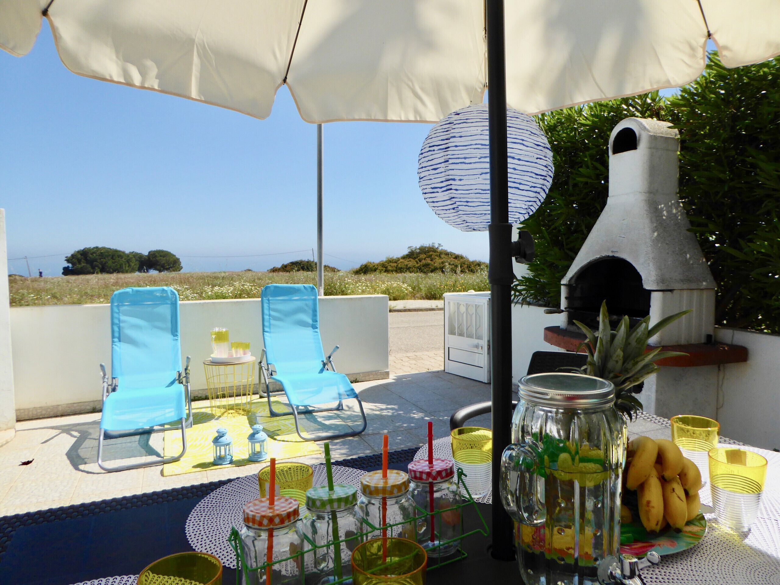 This vacation rental features a BBQ grill and air conditioning. Bathroom amenities include a bidet, towels, and toilet paper. The kitchen is equipped with a dishwasher, as well as a coffee maker, an electric kettle, and a microwave.