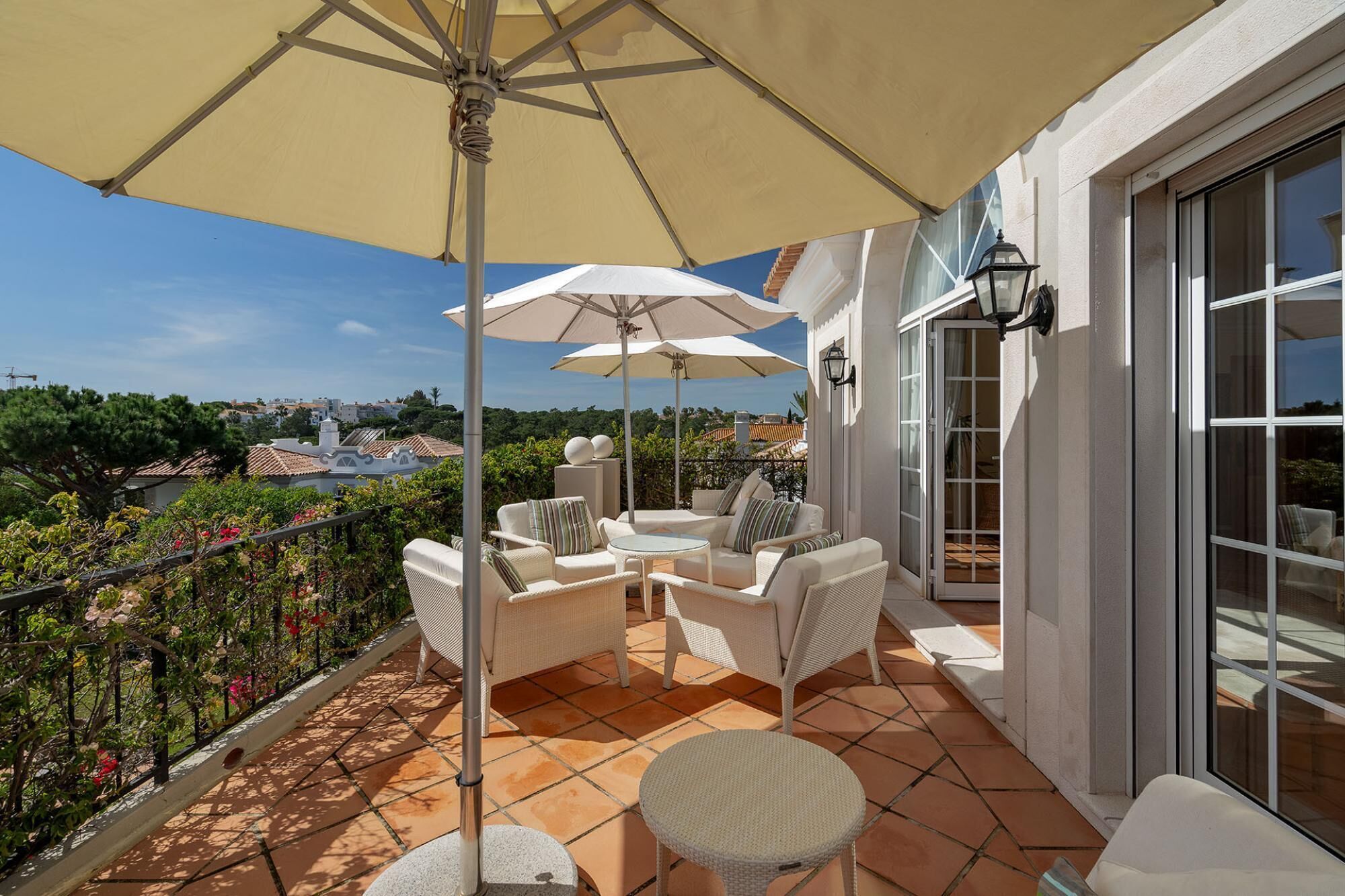 Large, shaded terrace, perfect for outdoor dining.