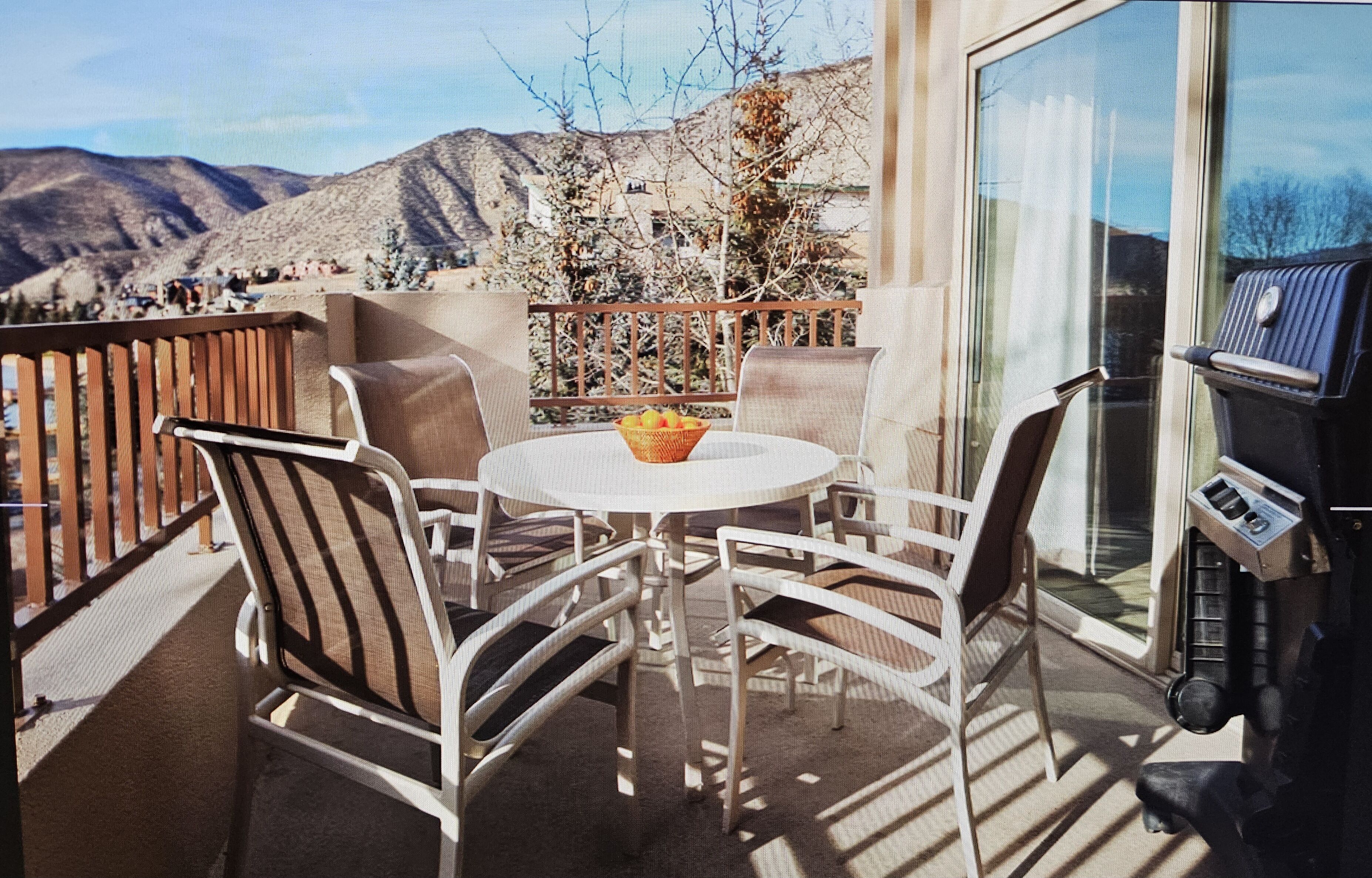 • Balconies or patios with table and chairs, and gas barbecue grill