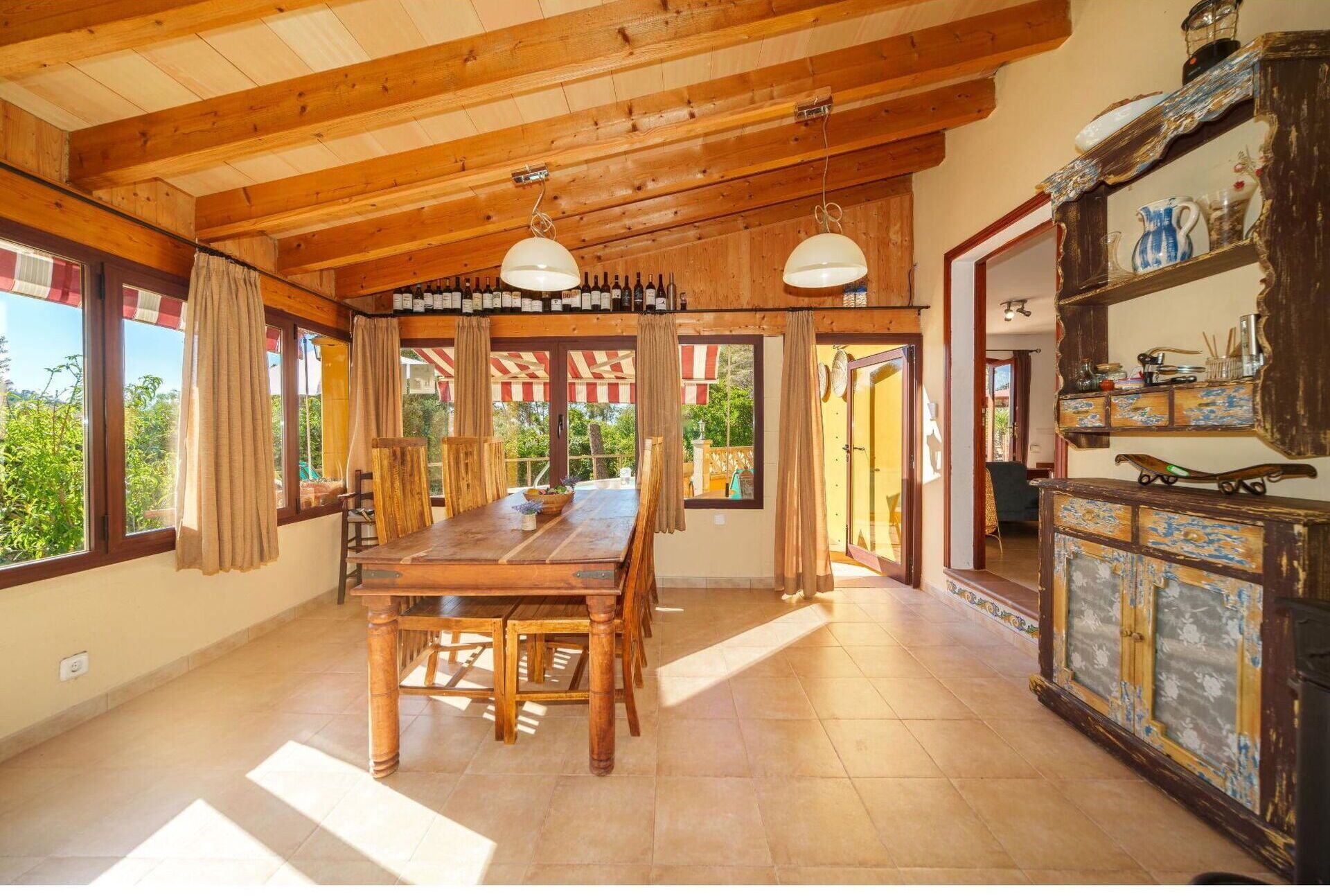 Villa Maggy is entirely built in traditional mallorcan style, with exposed beam ceilings and terracotta tiled floors and offers panoramic views over the sea and the surroundings mountains.
