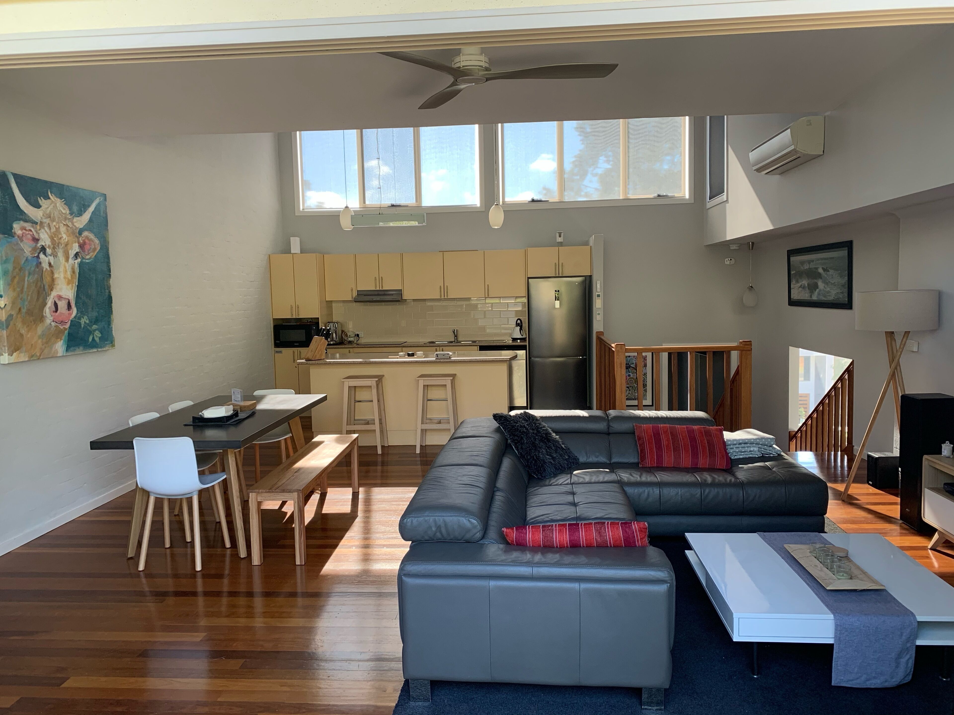 A modern stylish ensuite 2br villa spread over three levels providing open plan living with 65 inch TV with Netflix, Wi-Fi and Blu-ray; kitchen with induction cooktop, electric oven, dishwasher, microwave and Nespresso coffee with pods. The spacious master bedroom includes ensuite, smart TV and Alexa controlled devices. Complete laundry facilities are also available. Outdoor provides a private garden, gas BBQ and outdoor setting on your private deck . Single carport and parking+1. ****** A $180 cleaning fee per booking applies to this listing.******