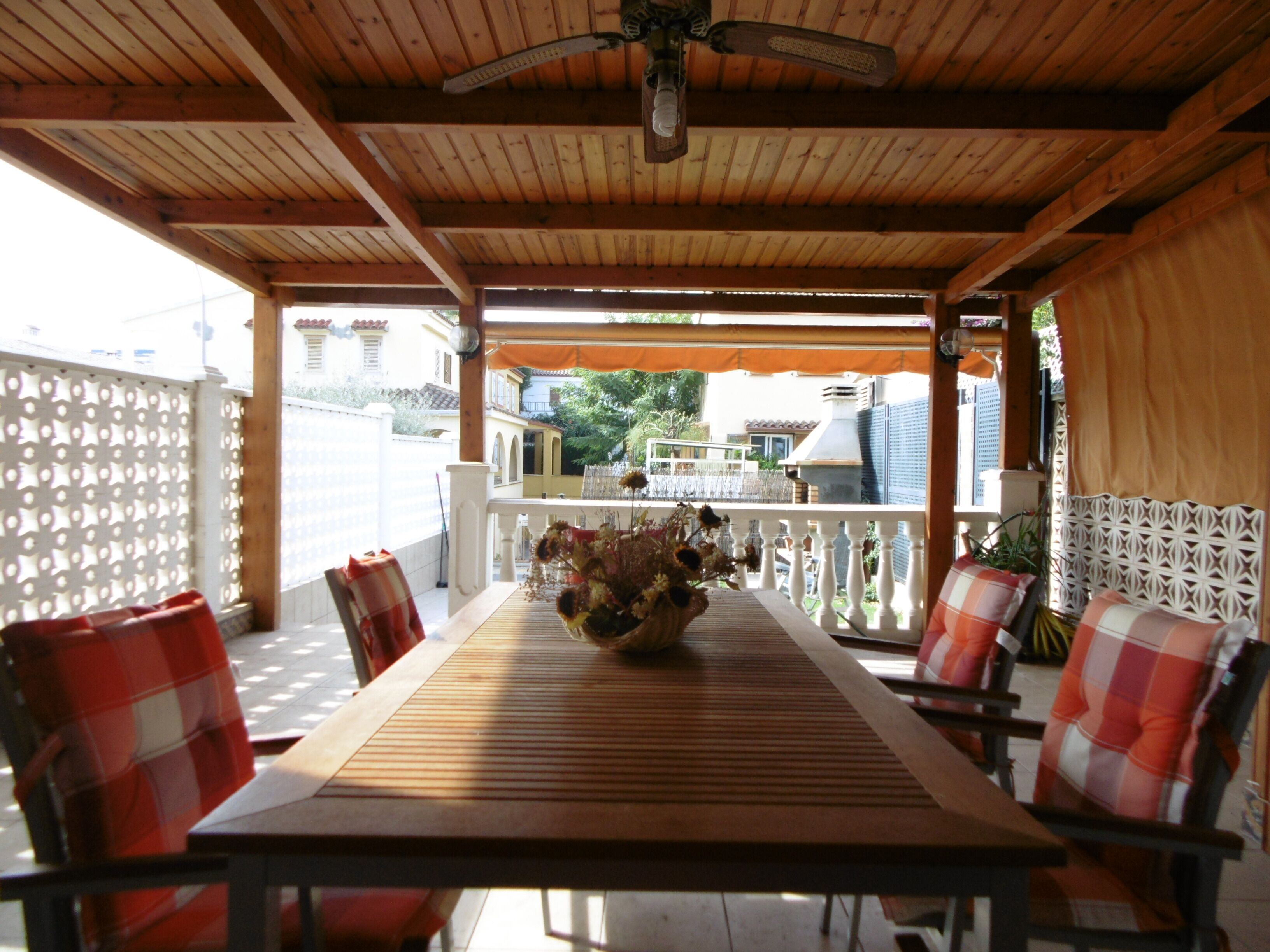 Villa "Mara Villa". In the centre of Benicassim, in a quiet, sunny position, excellent location: right in the centre but still quiet, 300 m from the sea, 300 m from the beach. Private: property 770 m2 with lawn and trees, swimming pool (13 x 4 m, depth 120 - 180 cm, seasonal availability: 01.May. - 30.Sep.). Terrace (70 m2), garden furniture, barbecue, roofed, parking (for 3 cars) at the house. Supermarket 300 m, restaurant, bar, café 100 m. The owner does not accept any youth groups. Neighbourhood highly sensitive to noise. Quietness and good behaviour expected.