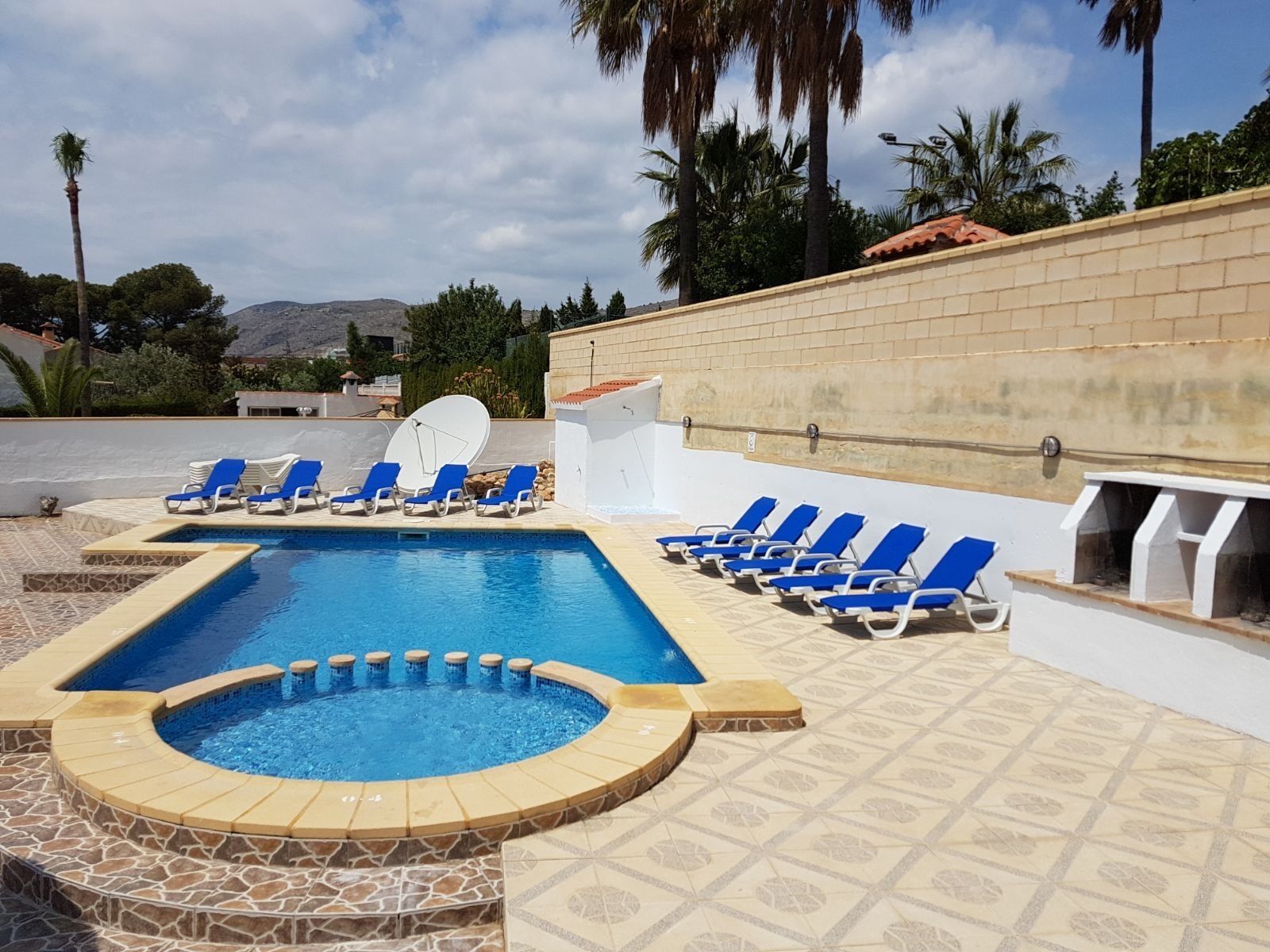 his very spacious fully fitted Villa is ideal for large groups and family reunions. The garden boasts a large pool and sun area with bar, bbq and outdoor jacuzzi. Situated in a private residential area about 5 km outside of Benidorm with easy and economic taxi access to the city nightlife and beaches.