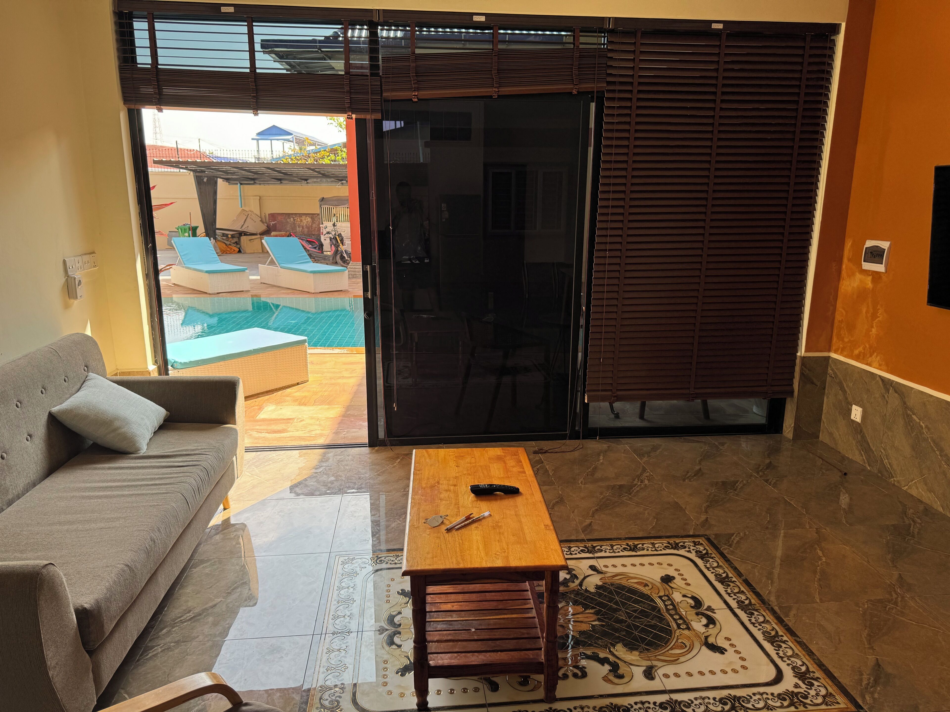 Featuring garden views, Cozy Paradise in Battambang features accommodations, an outdoor swimming pool, and a garden. The property is around 3.4 miles from Bamboo Train Battambang, 8.5 miles from Killing Caves of Phnom Sampeau, and 13 miles from Banan Temple. There's a sun terrace and guests can access free Wifi and free private parking. At the villa complex, each unit has air conditioning, a seating area, a flat-screen TV with cable channels, a safety deposit box, and a private bathroom with a walk-in shower, bathrobes, and slippers. A balcony with an outdoor dining area and pool views is offered in some units. At the villa complex, some units are soundproof. Both a bicycle rental service and a car rental service are available at the villa. Popular points of interest near Cozy Paradise include Battambang Museum, Colonial Buildings, and Battambang Royal Railway Station.