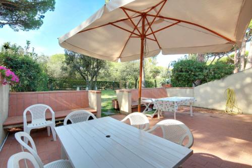 Villa in private park, all on one floor consists of 3 bedrooms, 3 bathrooms, large living room overlooking the pine forest, large fully equipped kitchen, hall, dining table with chairs and sofas outside, barbecue, private parking spaces, beautiful lawn in front and behind the house is ideal for children. Beach within walking distance with shed and reserved space protected from the sun by a roof of straws. Clear sea.
