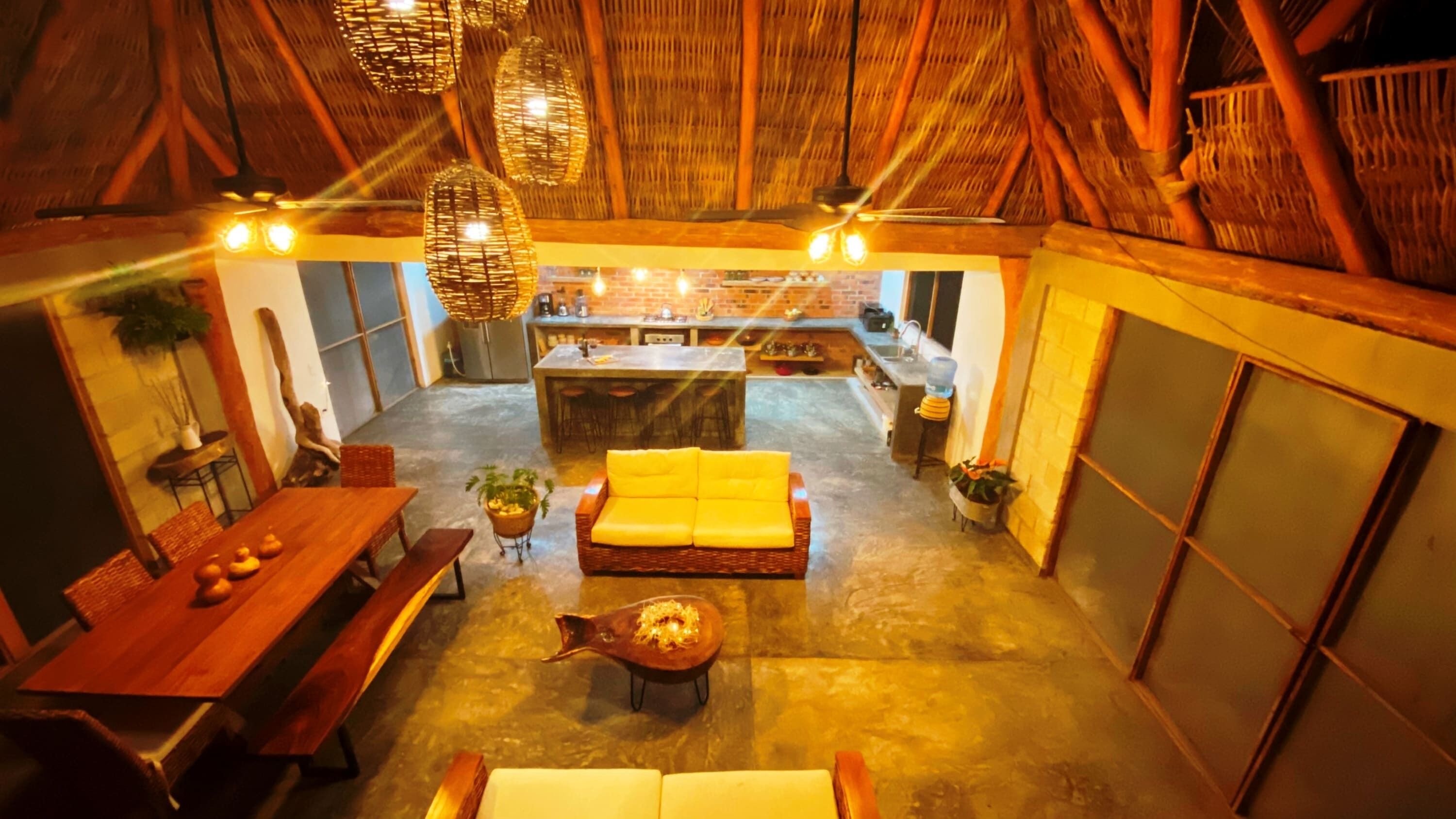 The main room for gathering together is the large open air palapa covered living, dining and kitchen area. The kitchen is fully equipped with a dishwasher, coffee maker, juicer, blender and other typical amenities.