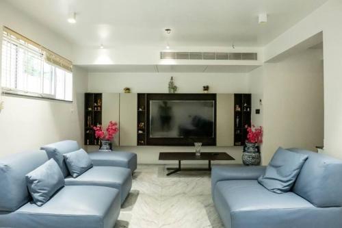 Your Chennai adventure begins at this 2-bedroom villa. Step into this gorgeous property and be greeted by the superbly furnished living room, where you can relax on the plush sofas after a day of exploring. The bedrooms feature two king beds, ensuring a comfortable night's sleep for all guests. With amenities like a washing machine, WiFi, iron, and AC, your stay will be enjoyable and convenient. Plus, there's an additional space with 2 full beds, perfect for extra guests or simply lounging around. Feel free to reach out to us during your stay - we're happy to suggest local spots to check out.