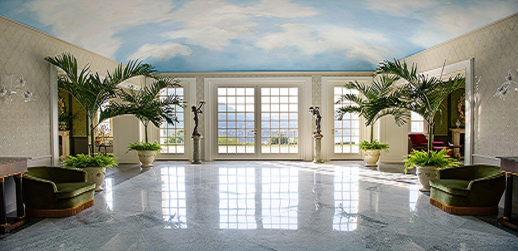 Ground Floor: Grand Foyer with fresco ceiling and spiral marble staircase, Gym - yoga / dance / cardio / weight studio. Large Cantina / Game Room & Wine Cellar, Video Conference room.