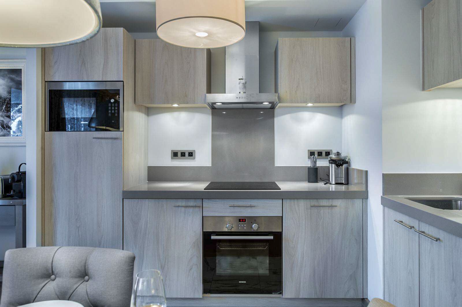 The apartment's well-appointed kitchen comes equipped with modern appliances, including a coffee machine, dishwasher, electric hobs, fridge, microwave, and oven. You'll have all the conveniences you need to prepare delicious meals, whether for breakfast before a day of skiing or a cosy dinner with loved ones.
