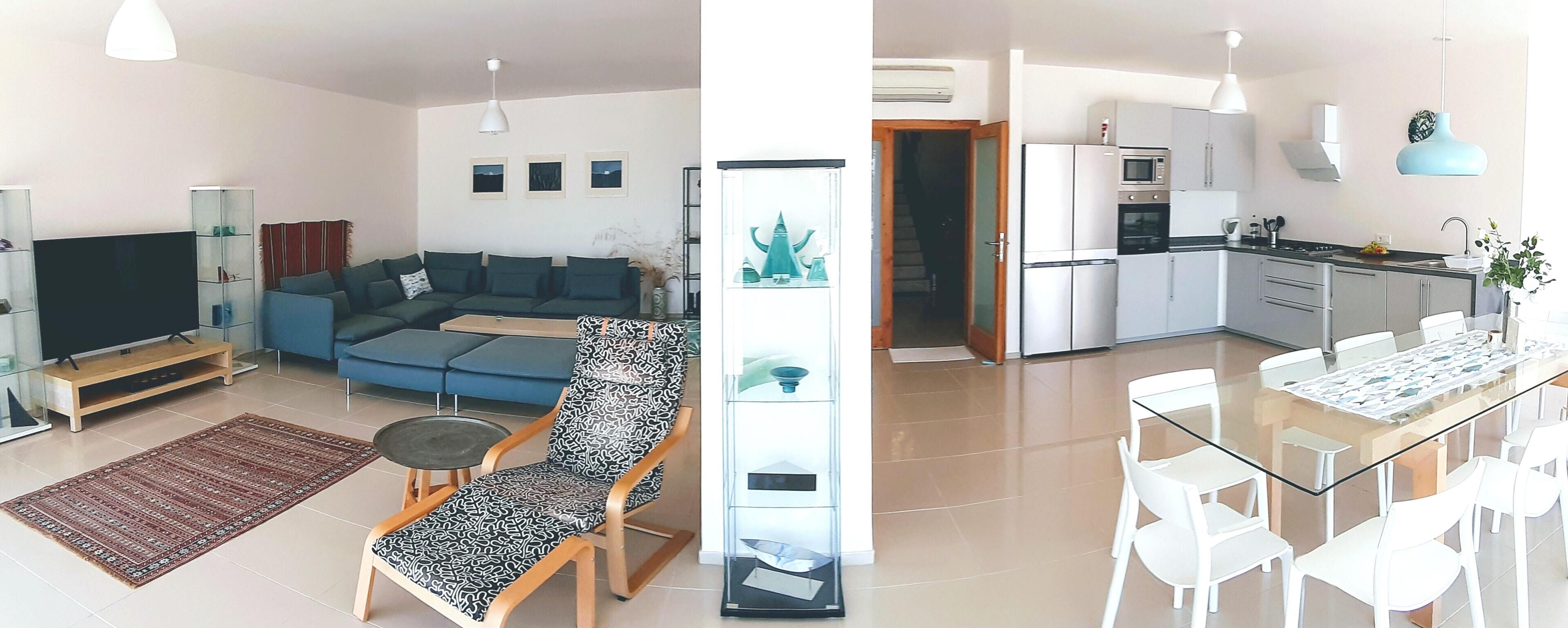 3 large bedroom duplex, fully furbished, all rooms are with WC, jacuzzi or shower, wonderful panoramic seaview, large kitchen, with seaview!, large living room with cheminee , and flat screen TV, dinning room with balcony allowing to dine inside or outside.