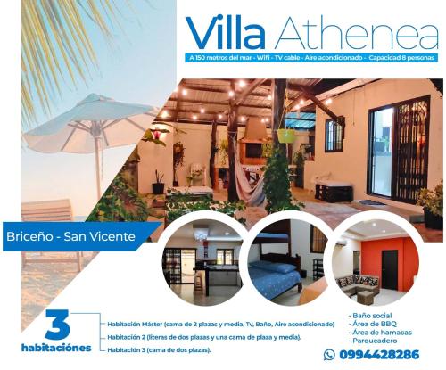 Offering an open-air bath, villa Athenea provides accommodations in San Vicente. The air-conditioned accommodation is 1.6 miles from Canoa Beach, and guests can benefit from private parking available on site and free Wifi. Staff on site can arrange a shuttle service. Providing a patio and garden views, the villa includes 3 bedrooms, a living room, satellite flat-screen TV, an equipped kitchen, and 2 bathrooms with a shower. For added privacy, the accommodation has a private entrance and soundproofing. Guests can make the most of the warm weather with the property's barbecue facilities. Sightseeing tours are available within a reachable distance of the property. Guests can also relax in the garden or in the shared lounge area. Eloy Alfaro International Airport is 60 miles away, and the property offers a paid airport shuttle service.