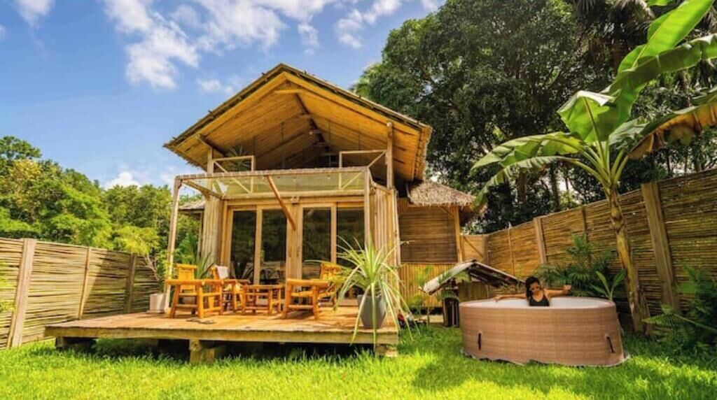 Stunning 2 bedroom bamboo villa with jacuzzi, set in a picturesque rice field with incredible views.