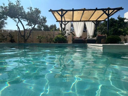 Outside there is a private pool and several green areas with a hammock, a seesaw and several loungers where you can rest.
