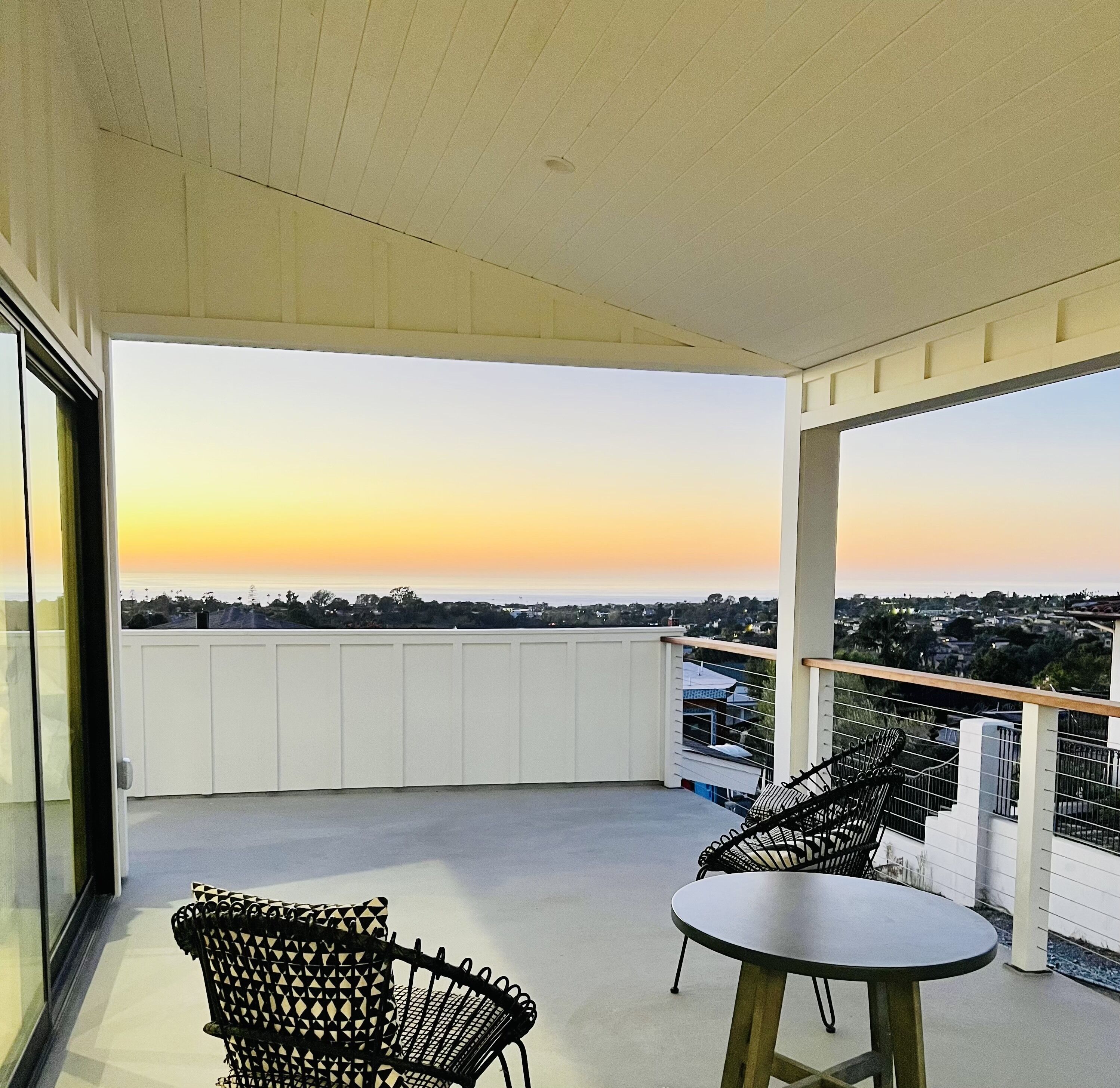 Stunning Panoramic Ocean Views from every room in this newly constructed and perfectly appointed Pied a Terre. Fully appointed with luxury amenities including Gourmet Kitchen, Walk In Shower, Nespresso Coffee Machine, Washer/Dryer, Plasma TV in Living Room and Bedroom. Private Entrance with two al fresco outdoor seating areas. 10 minute bike ride to beach and 30 minute walk. 1 mile to downtown Encinitas with countless shops and restaurants.