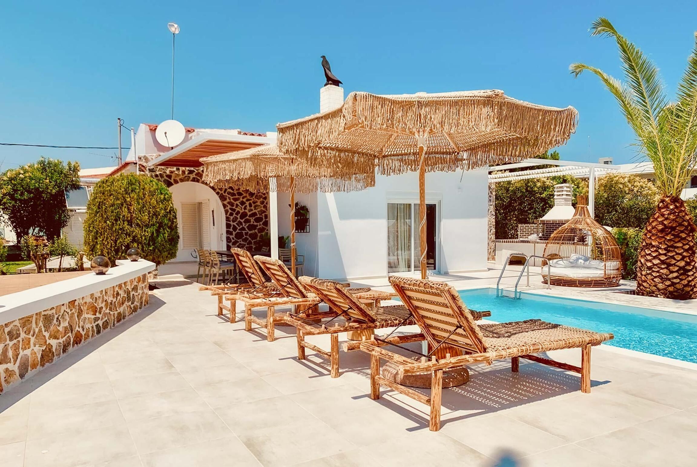 Drenched in mid-century glamour and Rhodian elegance - a place where hidden coves and protected land envelop the ancient spirit of Greece. Situated in 1-hectare of exclusive estate in Faliraki, Noura Villa is a restored Rhodian escape, with and Iconic Infinity Private Pool, Design - Led Balinese beds and captivating settings. Wrapped in sea views, where rocky lands meet sapphire waters, our iconic villa embody the timeless glamour of the Aegean.