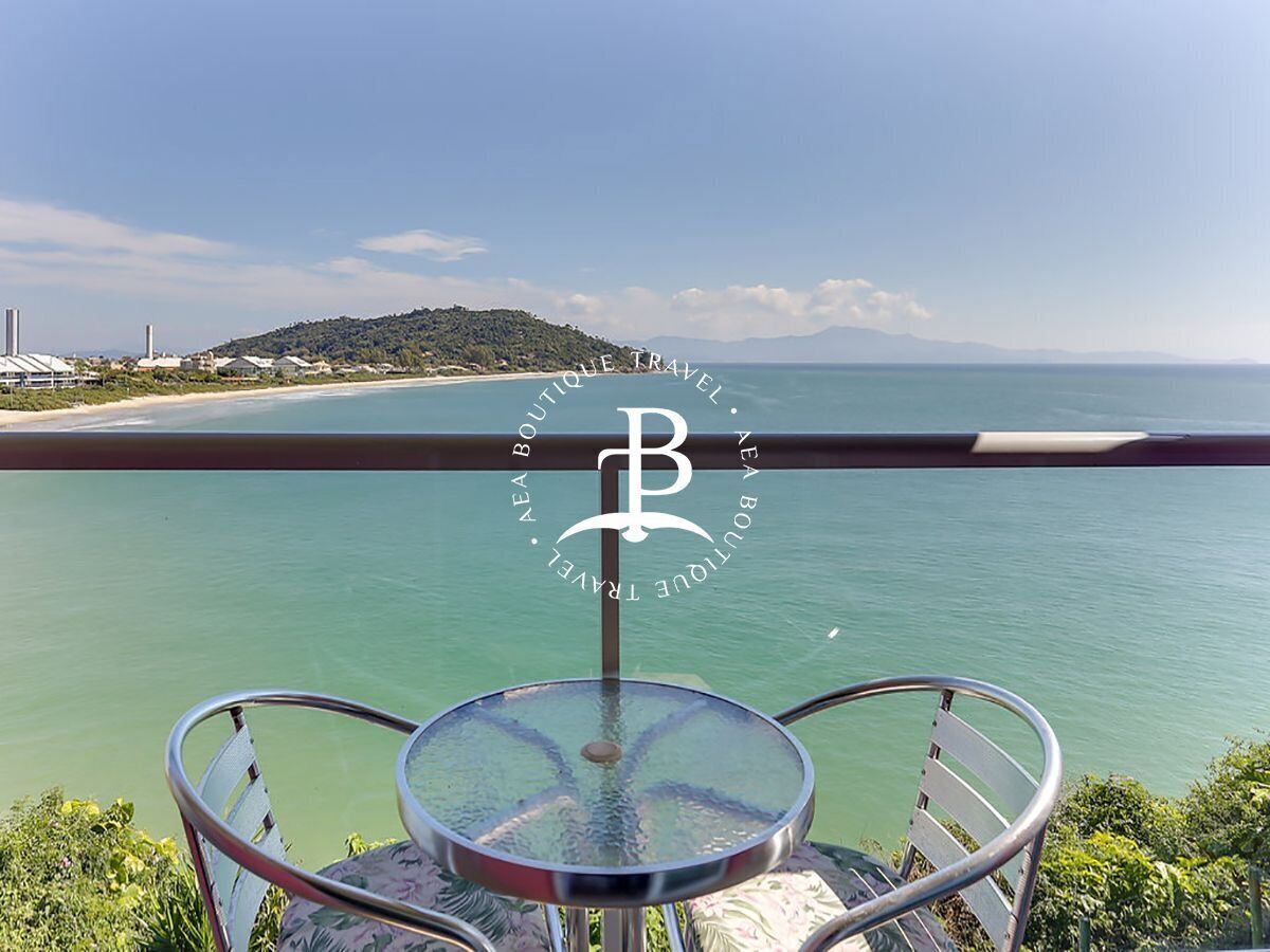 This exuberant seasonal accommodation with the travel agency AEA Boutique Travel, is located at the top of the hill where the island ends, being in this house is having the feeling of watching over the island of magic, with a unique view, as there is no other in Florianópolis with this architecture that allows you to be on top of the sea!