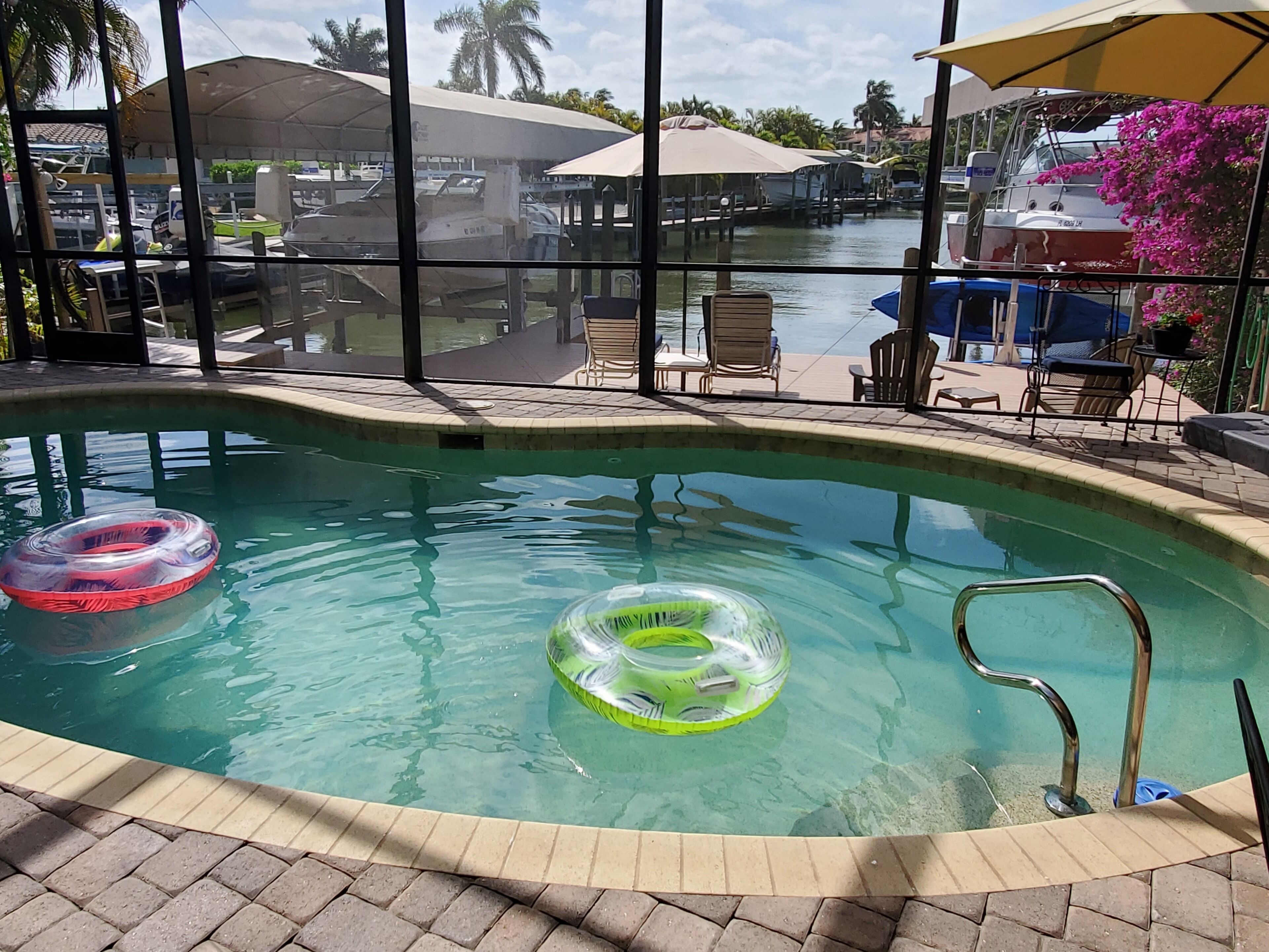 - "We had a wonderful stay. The place was nice and the owners communication was exemplary. Had a few Dolphin visits that the kids absolutely loved. We also opted to rent a boat and I drive it up through the channel and picked everyone up right from the back yard. A few little things like that really made this place a very nice pick. We also loved the pool!" - "My family and I were long overdue for a relaxing “chill” vacation. The home was perfect! We loved the infinity pool overlooking the canal. There were lots of floats and toys for the pool there. For the beach day the beach was a close distance, it could be walkable but the Florida heat coerced us into driving. Easy place to park and get to beach. Another great perk was there were at least 4 umbrellas and a chair for all of us! Ft. Myers is coming back, it felt good to play a small part in stimulating their small businesses."