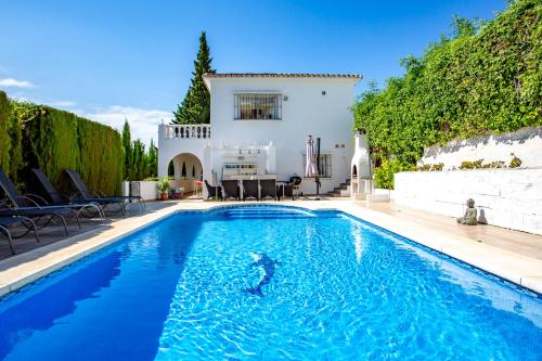 South facing Villa in a beautiful and quiet area in the Costa del Sol. 6x4m private pool very sunny all day. Fully equiped with everything you could need for a relaxing enjoyable break. WI-FI, alarm and safe. 4 bedrooms, 3 bathrooms, large living room, big terrace and outdoor área, garage... Near to public transport (train and bus), supermarket, bar, restaurant, takeaway,... No car needed, the villa is on a higher level from the road, access by stairs. We will welcome you at the villa on arrival to give you all the necessary information and I will be available during your stay if you may need any help.