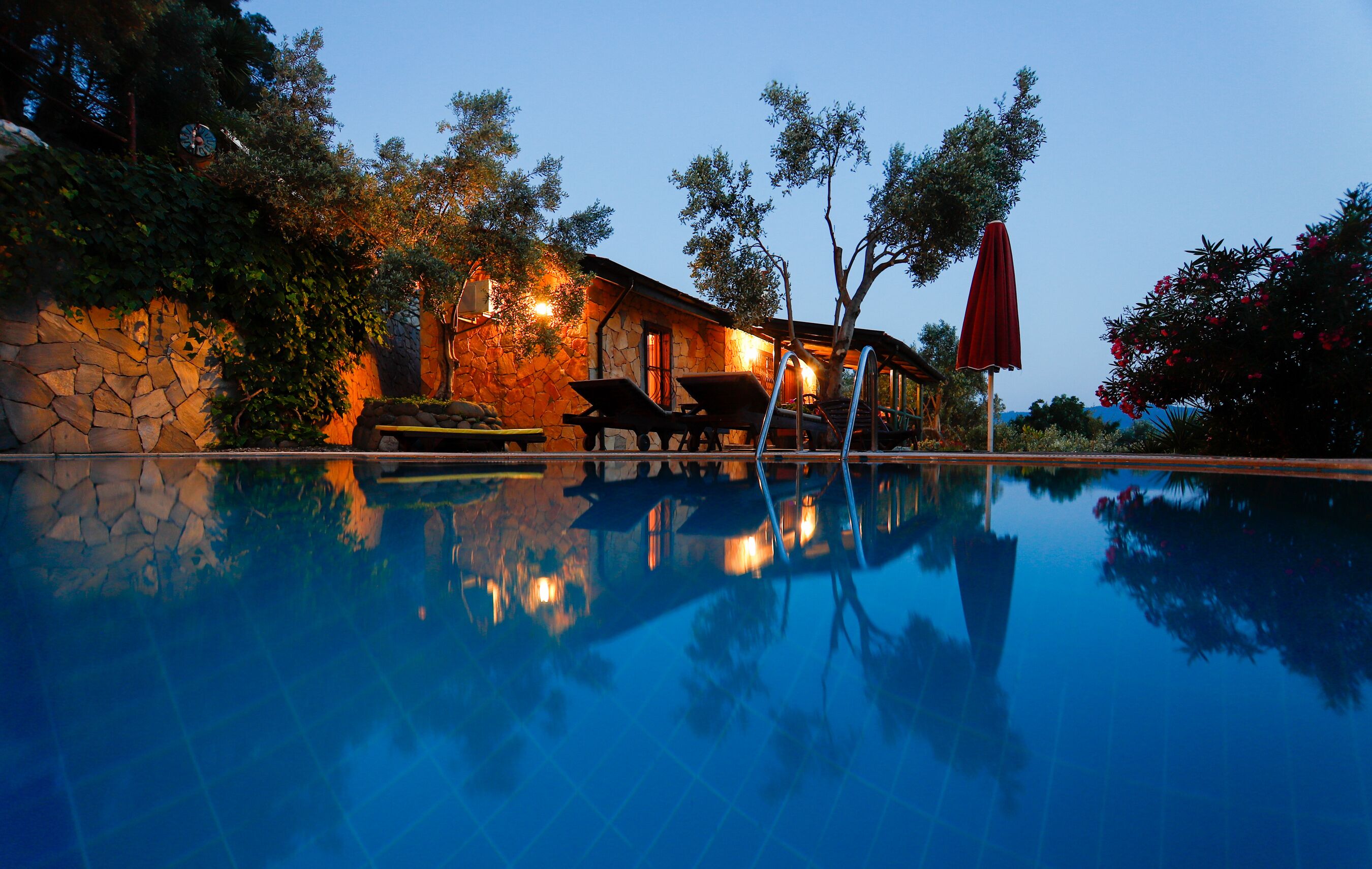 PICTURE THE SCENE - You're lounging on your own private sun bed (that you didn't have to reserve by spreading your towel on it at 6am), ice cold drink in hand (that you poured to exactly your own specification). Reading your favourite book (without any disturbance other than the birdsong). Later on you may take a dip in your very own private pool (alone - or perhaps with a few selected friends and family), fire up your own barbecue (ready to cook some locally - sourced food) and crank up the music (with your own personal play list). Not forgetting soaking up the sun, while looking at the view of Azmak River to the rear of the villa and the mountain to the front Complete Heaven!!!