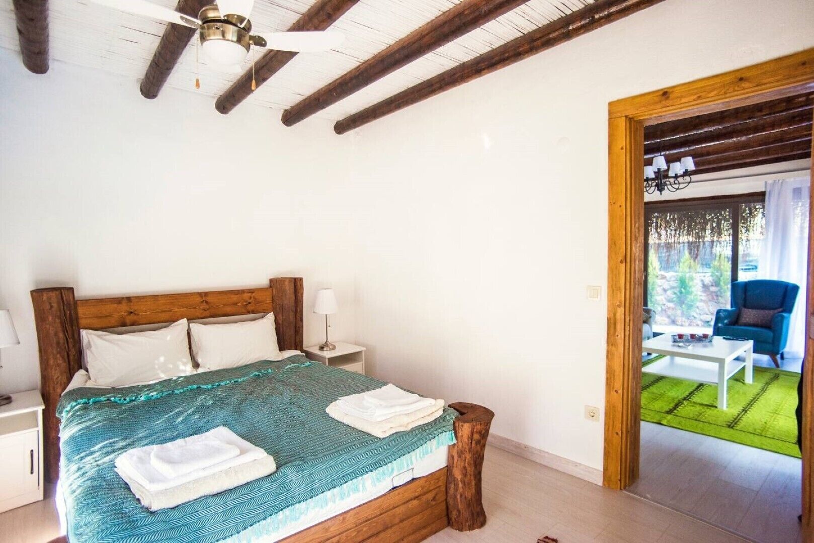 Beyaz Ev is walking distance (15 minutes) to the Akyaka town center and the fish restaurants (such as Olta, Kordon, Orfoz, Halil'in Yeri etc.) near the Azmak River , but still in a spot offering much needed quit and calm.