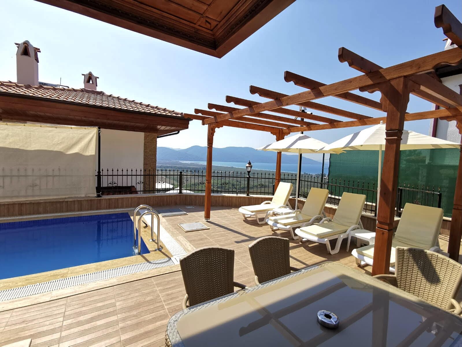 Our villa in Akyaka has 3 rooms with a capacity of 6 beds and has a private pool.