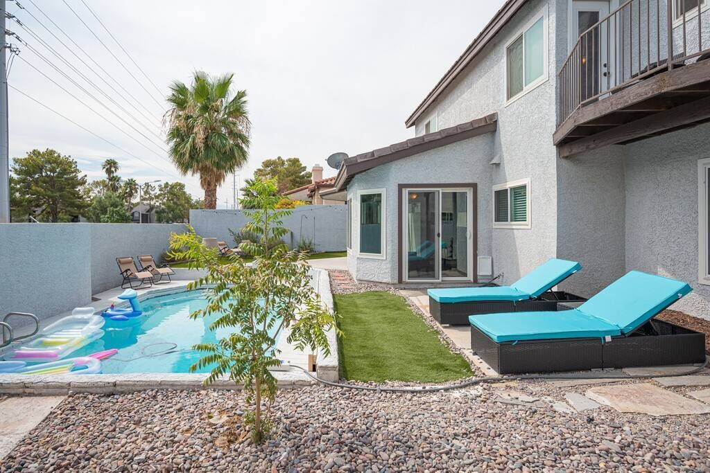 This scenic & stylish estate w/ upscale comfort, playful spaces, modern gorgeous yard, pool & spa is the perfect retreat for families &friends & is less than 17 miles from LV airport.