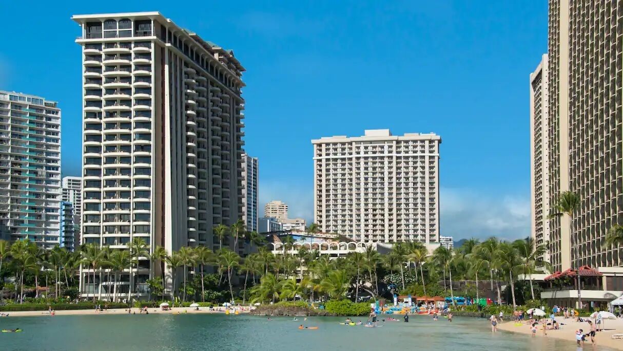 The resort is steps away from the famous Waikiki Beach. The resort offers guests many amenities four swimming pools, whirlpool spa, Mandara Spa and Holistica Hawaii Health Center, beauty salon, supervised recreation programs, and restaurants and lounges. Guests are treated to access to the very best stretch of Waikiki’s famous white-sand beach. The Hawaii Convention Center is less than a mile from the resort.