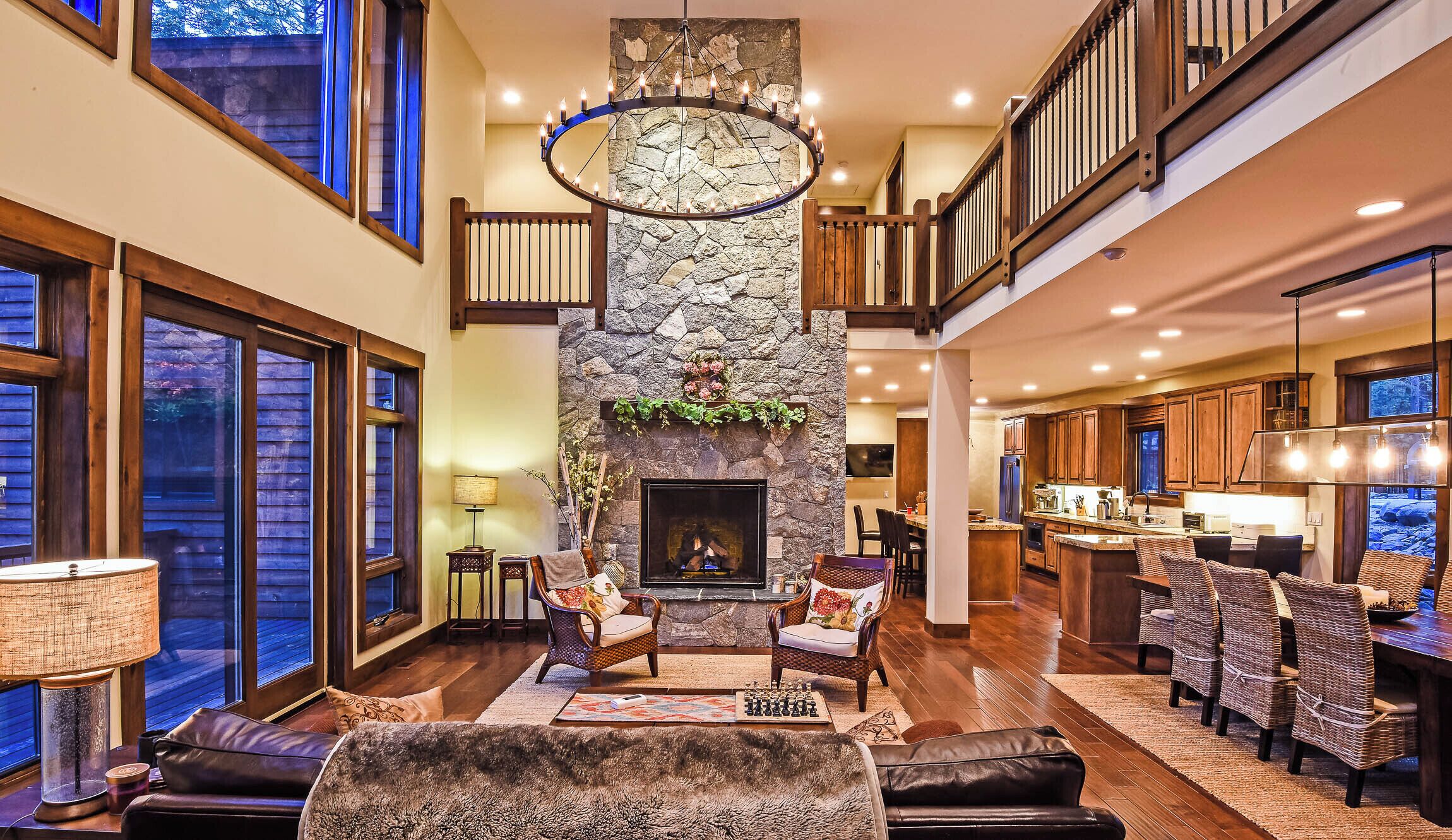 Step inside this gorgeous home and discover a spectacular great room with a vaulted, wood beam ceiling as well as large windows and glass doors welcoming in unparalleled views. The custom Tuscan chef's kitchen boasts plenty of counter space for meal prep, an extra-large refrigerator, and a double wall oven. Dine at the adjacent table or head outdoors, fire up the gas grill on the stone patio, and indulge in a perfect alfresco experience up on the furnished, multi-level deck. Back inside, the main living area offers a fireplace, a desk and chair for your laptops, plenty of comfortable seating, and a TV ready to stream all your favorite channels. This home also offers a secondary wing with a kitchen, bedroom, and separate living area.