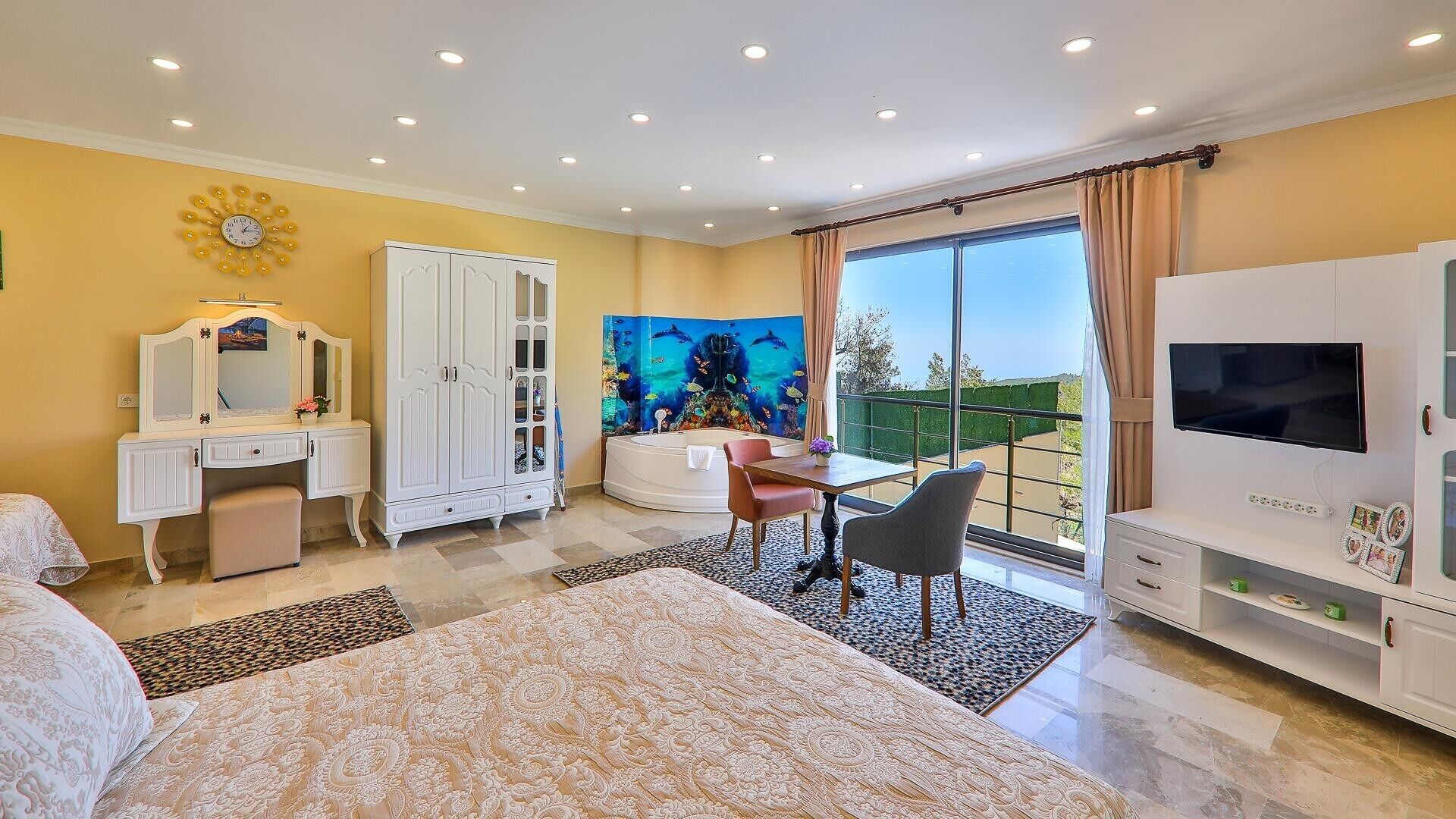 Featuring an outdoor swimming pool, a garden as well as a terrace, Renaissance is located in Kas, within 35 km of Lycian Rock Cemetery and 29 km of Saklikent National Park. All of the air-conditioned units feature a private bathroom, flat-screen TV, fully-equipped kitchen and balcony. Saklikent is 31 km from the villa, while Kalkan Bus Station is 7.7 km away. The nearest airport is Dalaman Airport, 124 km from Renaissance.