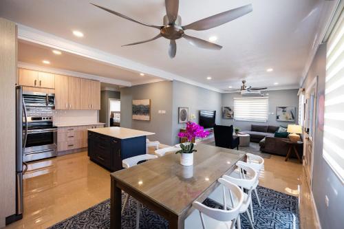 Ubuntu De La Villa- Palm View Estate is a recently renovated villa in Mammee Bay where guests can make the most of the outdoor swimming pool and garden. This property offers access to a balcony, free private parking, and free Wifi. Staff on site can arrange airport transfers. The air-conditioned villa consists of 3 bedrooms, a living room, a fully equipped kitchen with an oven and a coffee machine, and 3 bathrooms with a shower and a hair dryer. Towels and bed linen are offered in the villa. The property has an outdoor dining area. Mammee Bay Beach is a 9-minute walk from the villa.