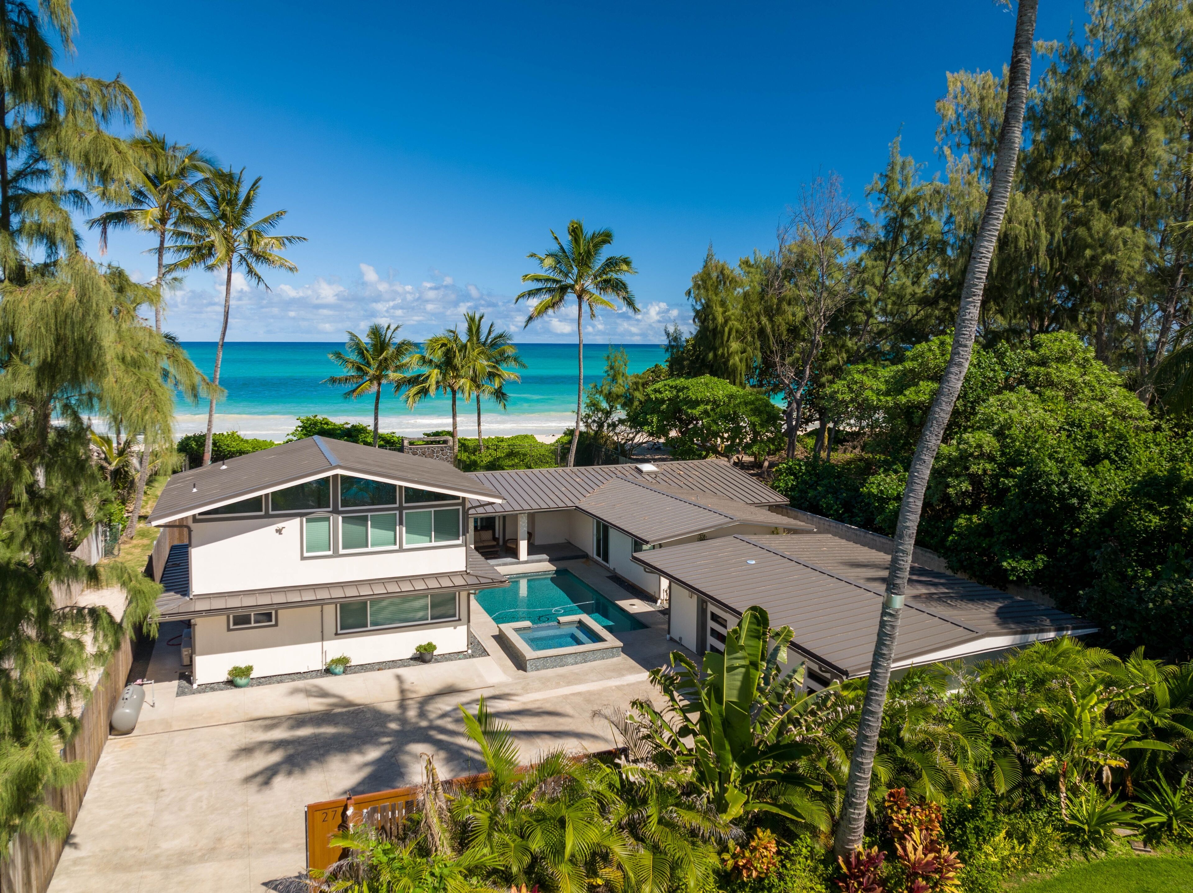 Welcome to Kailua Beach Villa, a spacious and contemporary oceanfront retreat on Oʻahu’s Eastern Shore. With 5 bedrooms, 5 baths, and 4,000 square feet of airy living space, this private villa blends modern design with barefoot luxury. Step outside to direct beach access, relax by your private pool, and soak in panoramic views of turquoise waters and lush tropical gardens—all within walking distance of downtown Kailua.