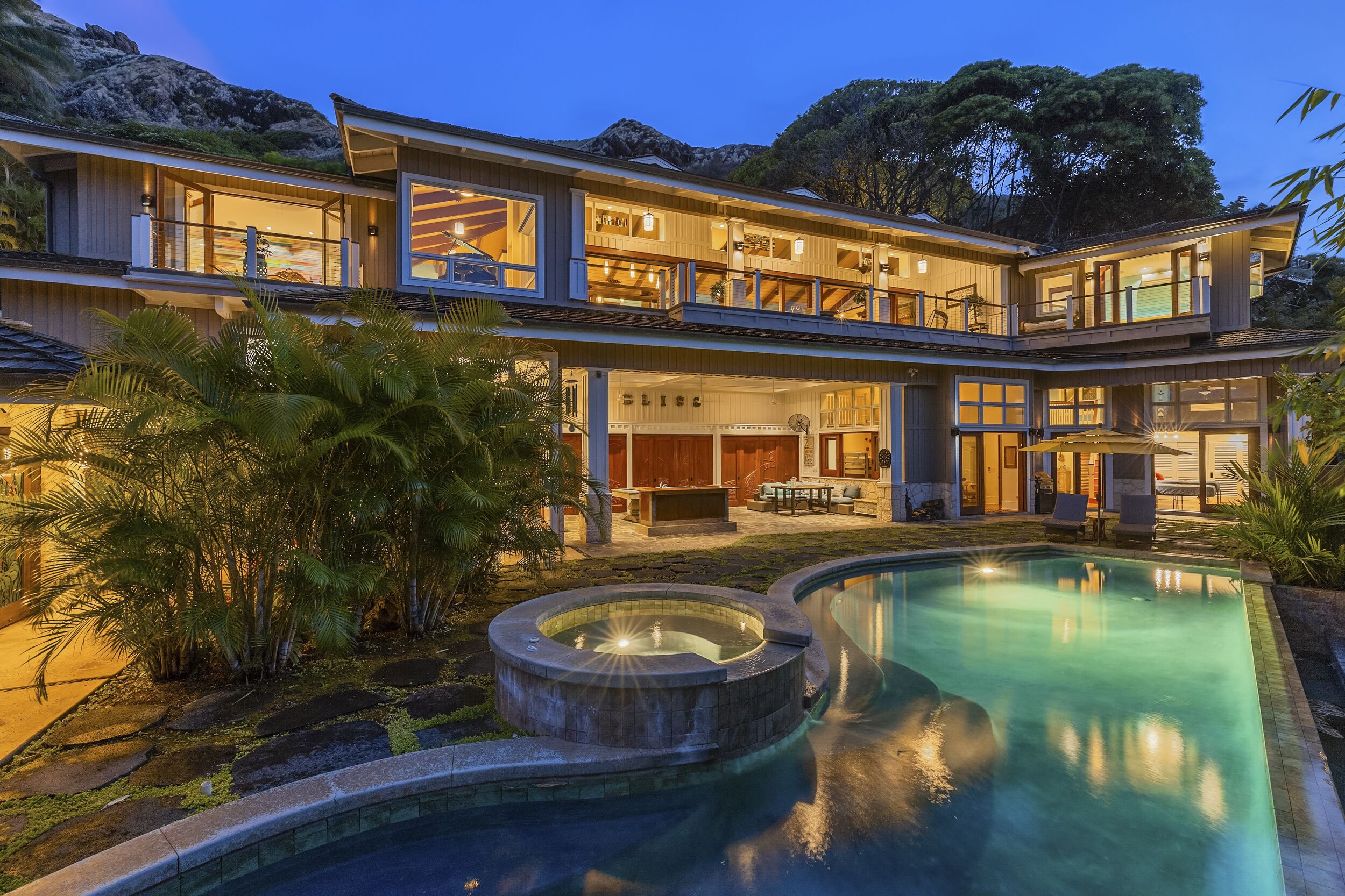 Make your tropical fantasy vacation a reality with this seamlessly designed coastal villa just minutes away from the world famous Lanikai Beach. On the eastern shores of Oahu, this luxurious 4 bedroom and 4.5 bathroom home hosts tons of stunning features such as a large top-level lanai (porch) overlooking the magnificent ocean views of Lanikai and the Mokulua Islands, as well as a private swimming pool and outdoor gameroom.