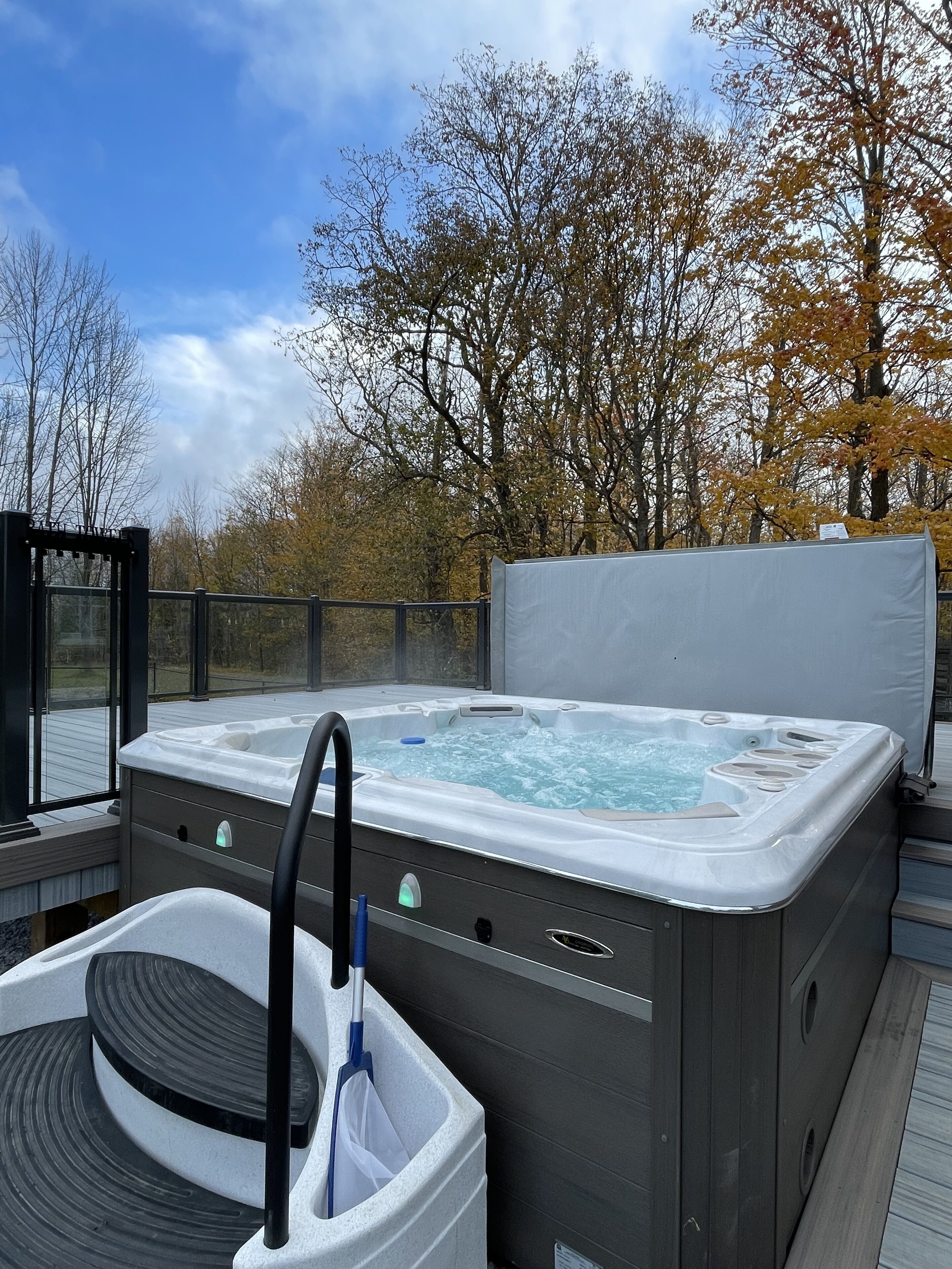 In addition to an inground swimming pool in summer, you will be enjoying a high-end hydrotherapy hot tub all year round. All included in your bookings.