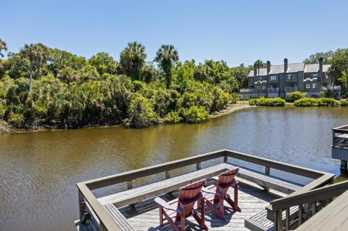 A perfect venue for the dream getaway. A beautifully appointed second floor, open floor plan one bedroom villa in the heart of Kiawah Island. Step inside this villa to hardwood floors, artwork, and an updated kitchen stocked for a chef. The spacious living area offers 180 degree lagoon views from the dining room and enclosed sunroom which gives this villa an open feel and more living space. This villa is a truly majestic place to have coffee or cocktails in the sunroom while enjoying nature in the lagoon, regardless of the season. The living room and sunroom have plenty of seating for guests or for a couple to lounge and relax. The bedroom has room for a sitting area and a king size bed. This villa is within 15 minutes walk or a 5 minute bike ride to the beach. Turtle Point Golf Course, The Sanctuary, and East Village Town Market are all within a 5-10 minute walk or bike ride for ease. You are positioned steps from the bike path for enjoyment of all of the activity Kiawah has to offer. End unit is peaceful and quiet. Linens, towels, and a starter kit of laundry and dishwashing needs provided. Grab your books or gadgets (wifi included), relaxing clothes, and a bottle of wine and enjoy!