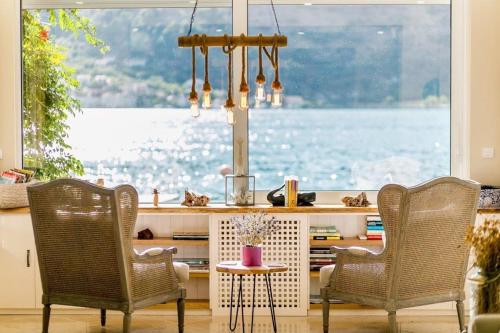 The villa looks out across the bay and therefore perfect for boat watching and timing the day by the colour of the sunlight falling on the mountain face opposite, or star gazing in the evening. The villa is in a relatively quiet part of the village although in either direction you will find some great restaurants which tend to sit out on the bay on stone piers. The nearest is about 250m away.