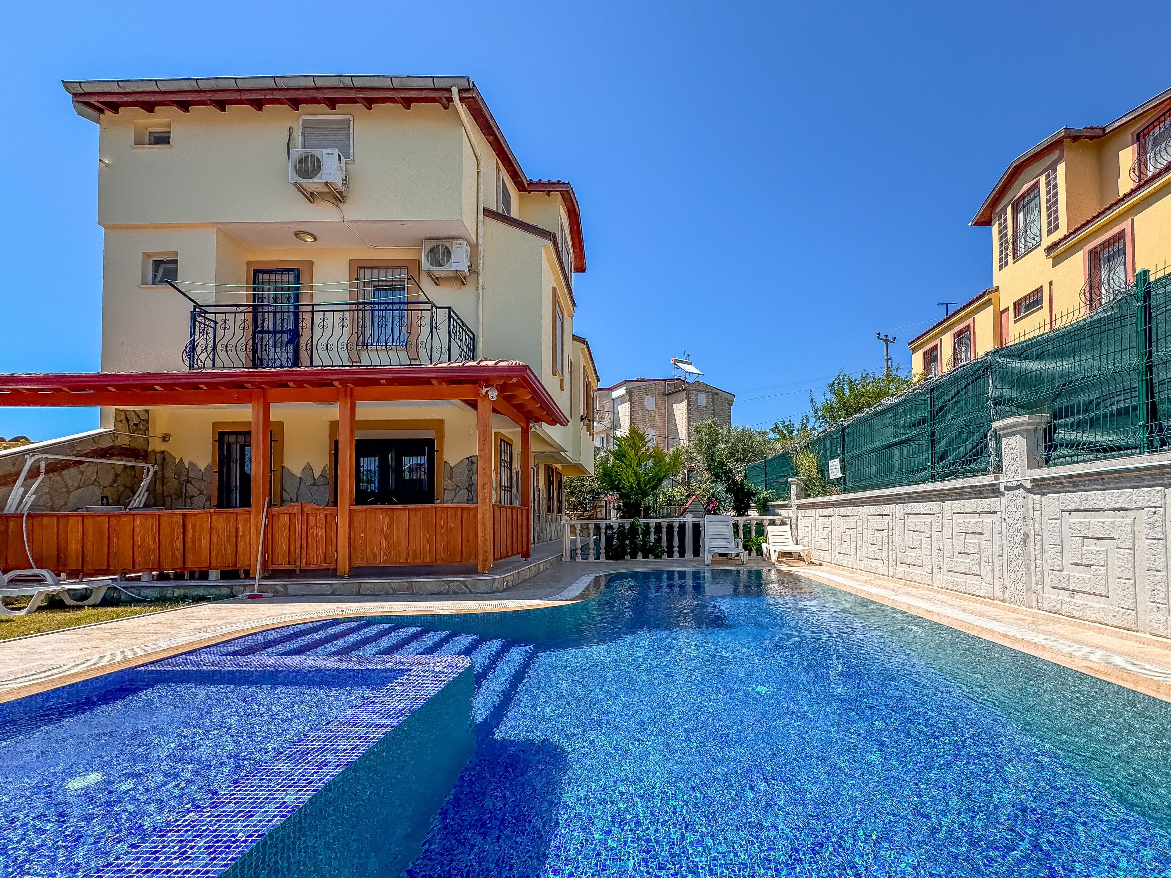 4-bedroom villa with a private swimming pool that sleeps 8 people in Kusadasi which is in the Ladies Beach area near the Palmin Hotel and only a 15-minute walk to Ladies Beach and seaside restaurants and pubs, and around 10-mins with a Taxi or car down to the town center and to Setur marina where there are lots of new and traditional restaurants.