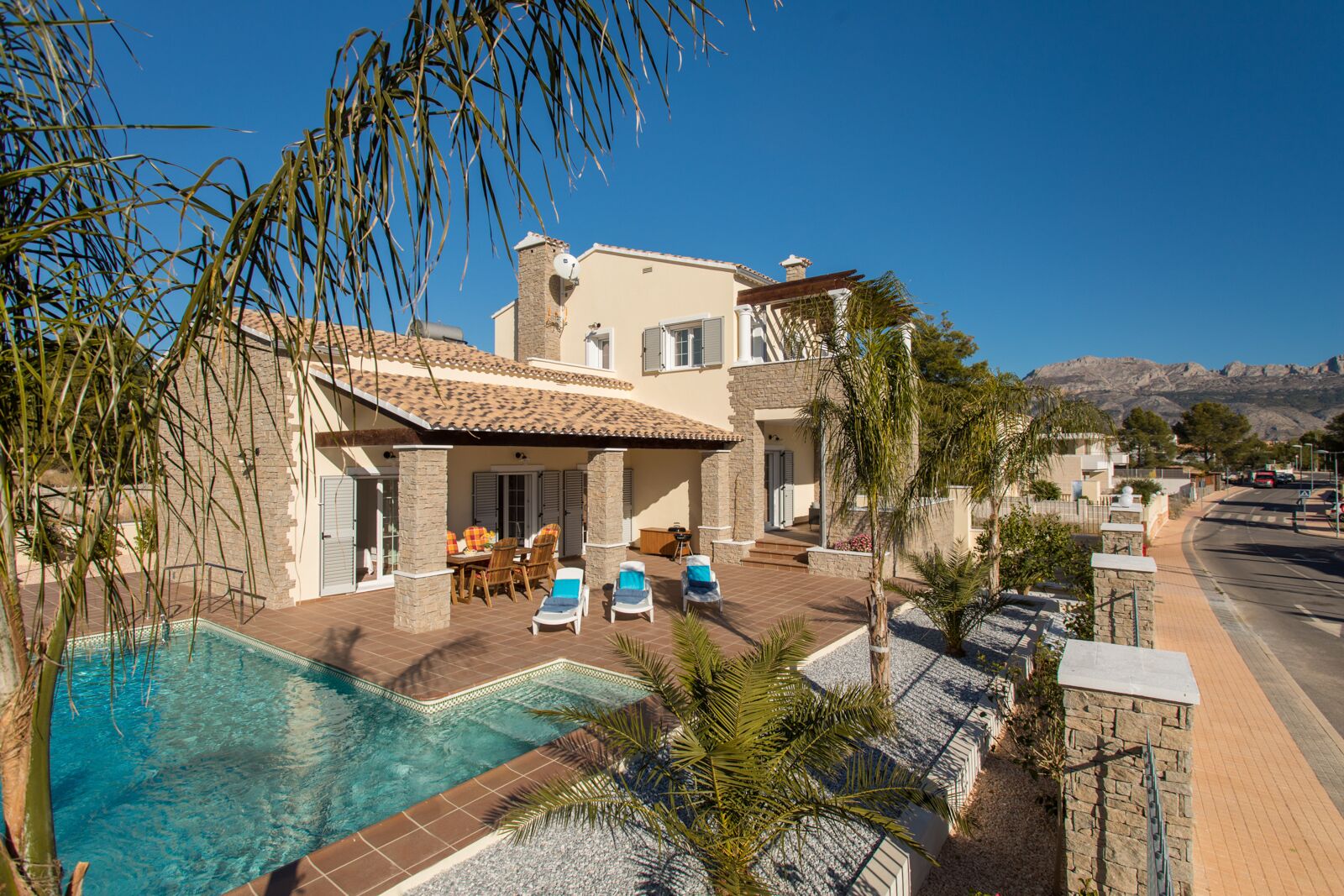 - "Excellent property, large for a family with a great hot tub and pool. Is highly recommended." - "Fabulous holiday and we all hope to return soon. Perfect vila" - "Easy access from Alicante and situated by the little town of La Nucia but just a short 15 minute drive from Altea with its lovely long pebble beach and numerous bars and restaurants or just the other side of the mountain Calpe, with sandy beaches and more restaurants and bars. Away from the the noise of Bendorm these 2 places are perfect. The villa is very well appointed with air con keeping all rooms cool and a modern kitchen that has all you need. However step outside and it really is stunning - the first terrace has stone table and benches (with a retractable awning to give shade when you need it), a second kitchen - fully enclosed with fridge, cooker, sink etc, this was so useful, and also a toilet and built-in Stone BBQ. The second terrace has a beautiully set pool, sizeable with plenty of space for all of the sunloungers, outdoor shower cubicle, a hot tub with stunning views of the mountains and sea and a second stone table and benches also with retractable awning. Such a brilliant space to spend time lounging swimming, enjoying the views, cooking, eating......it really has everything this place! You need a car, which we had and allowed us to explore local attractions such as the waterfalls (Fuentes del Algar) - a great place to swim and climb, and El Castell de Guadalest with its green lake, castle and quaint ancient village. We were looked after very well by Phillipe who was on hand when needed but left us to enjoy our week. Highly recommended."